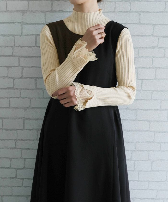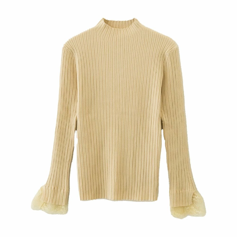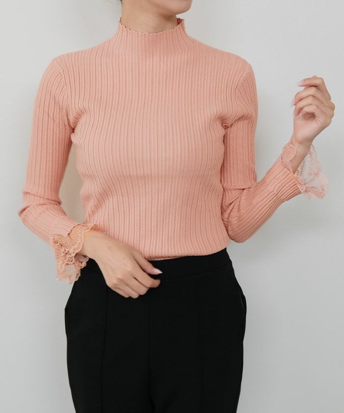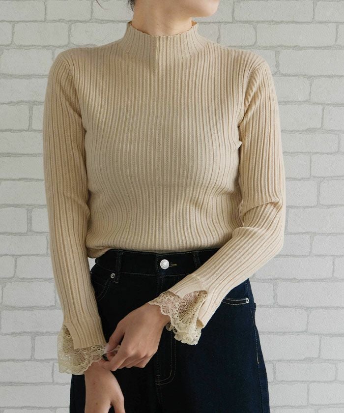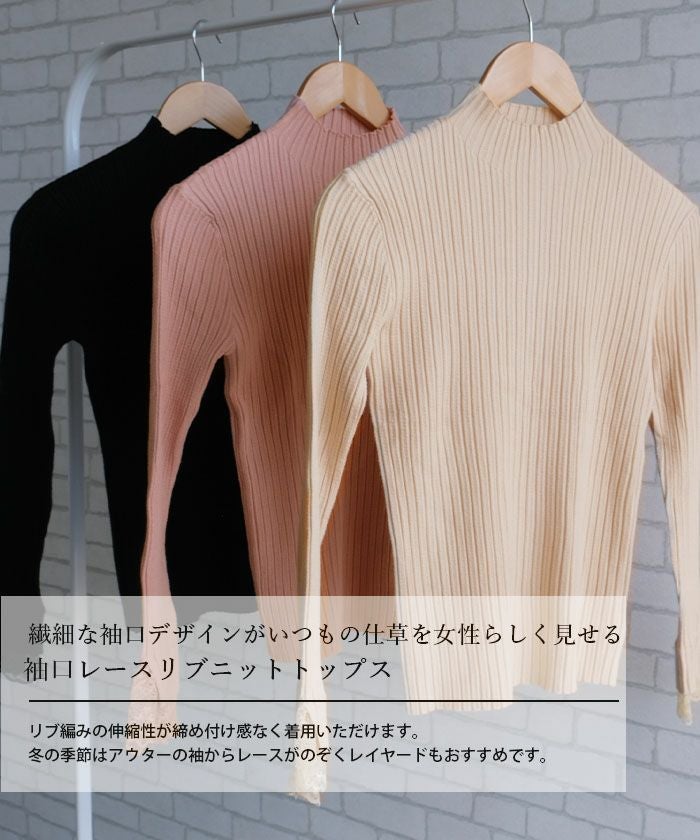 送料無料 袖口レースリブニットトップス 春 秋 冬 M L レディース ≪ゆうメール便配送20・代引不可≫ | | アクアガレージ aquagarage