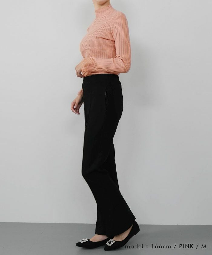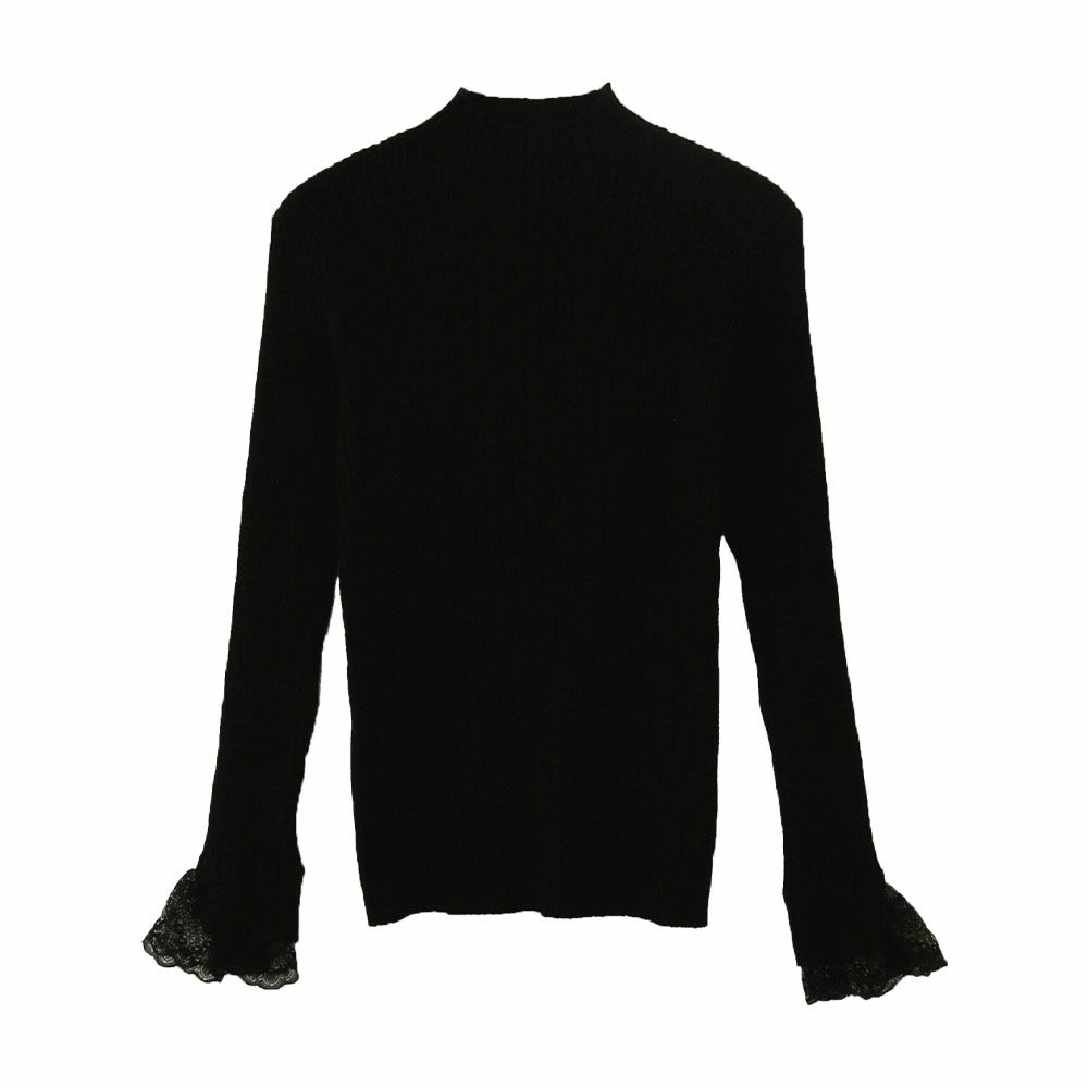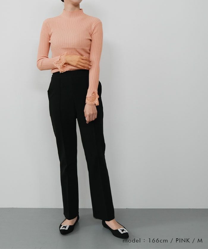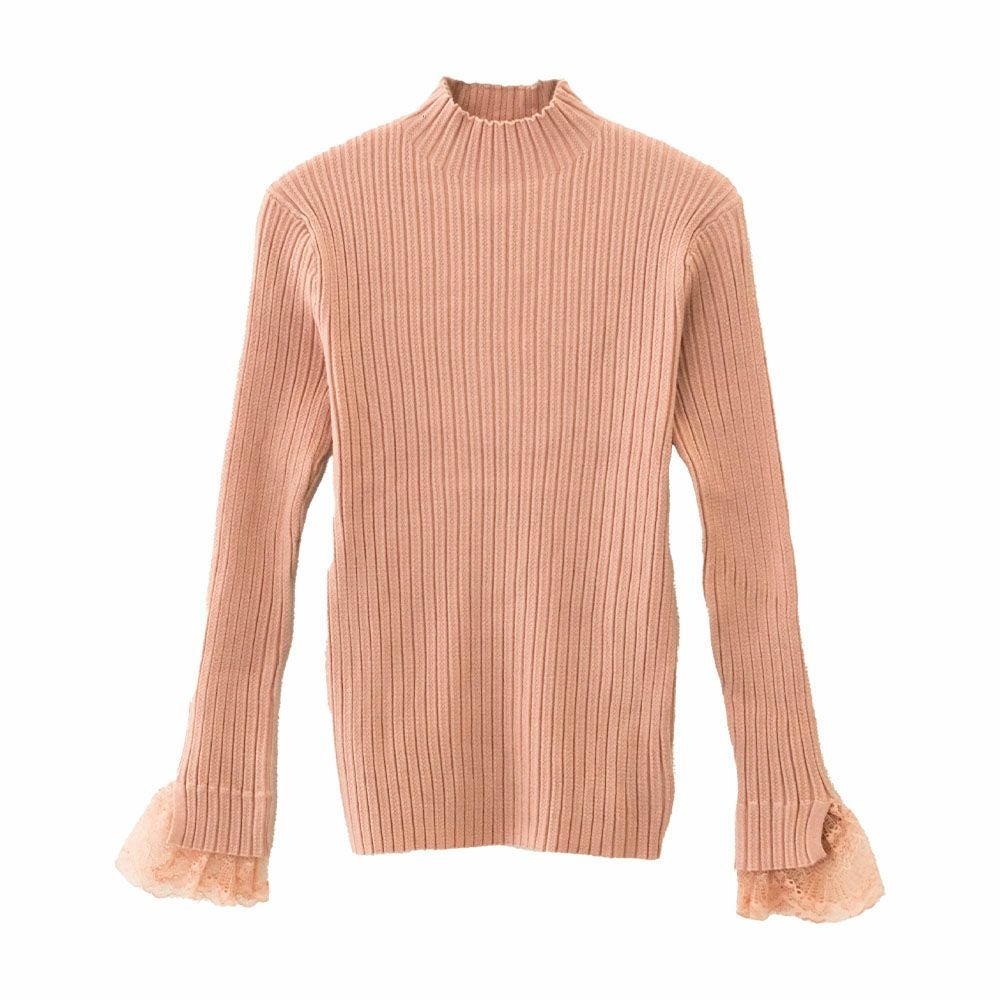 送料無料 袖口レースリブニットトップス 春 秋 冬 M L レディース ≪ゆうメール便配送20・代引不可≫ | | アクアガレージ aquagarage