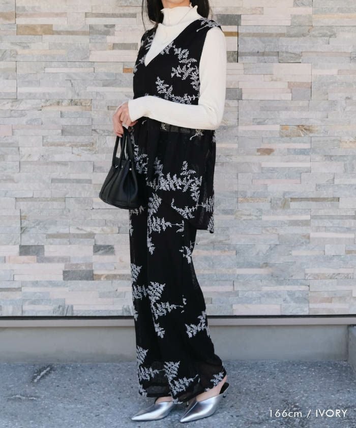 送料無料 袖花柄シアー切替トップス 春 秋 冬 M レディース ≪ゆうメール便配送30・代引不可≫ | | アクアガレージ aquagarage