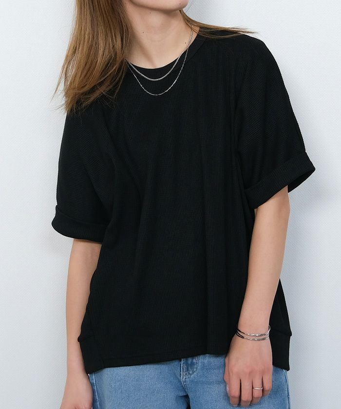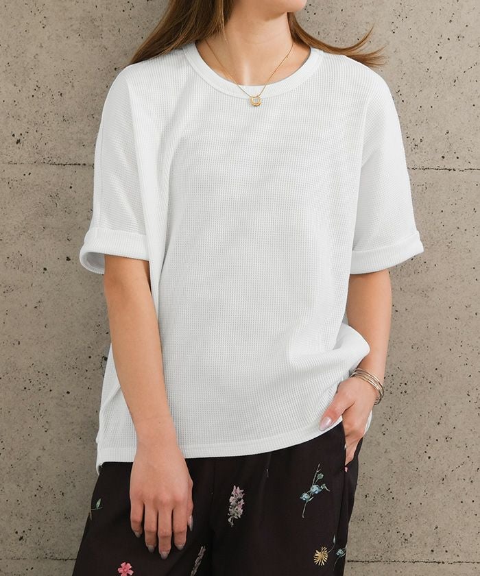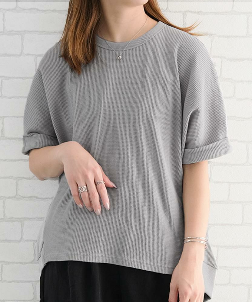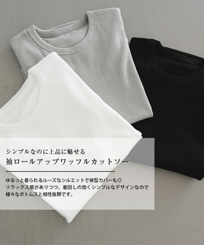 送料無料 袖ロールアップワッフルカットソー 春 夏 秋 M ≪ゆうメール便配送30・代引不可≫|アクアガレージ aquagarage