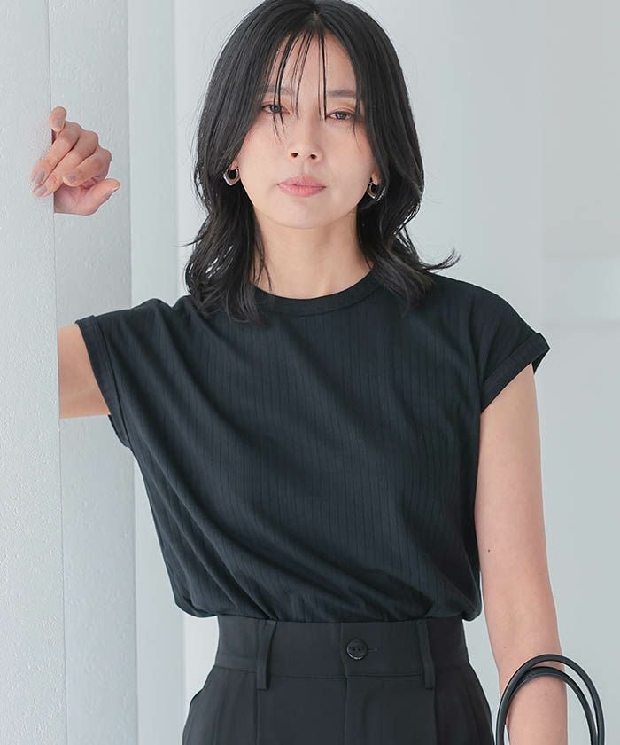送料無料 フレンチスリーブリブトップス 春 夏 秋 ≪ゆうメール便配送10・代引不可≫ | アクアガレージ aquagarage
