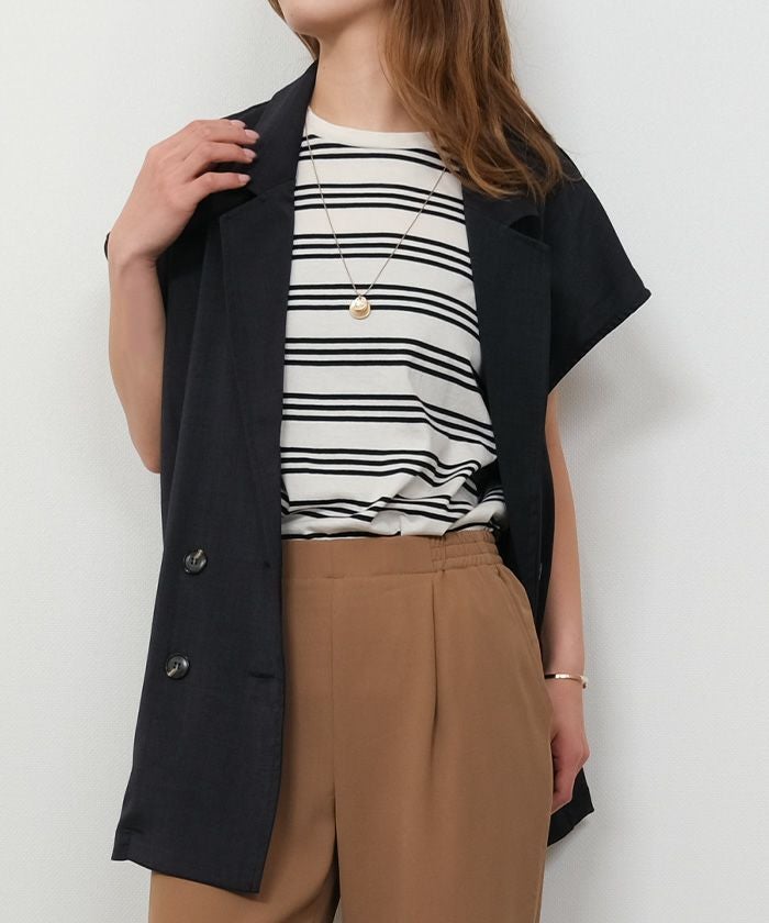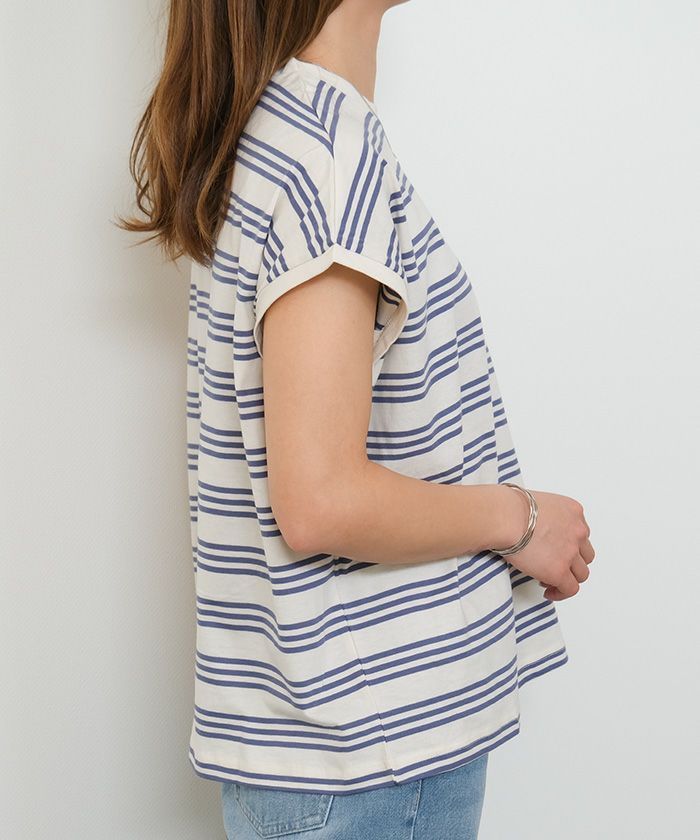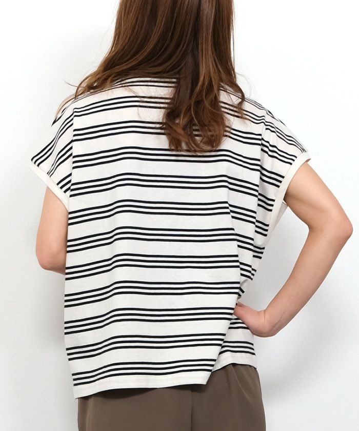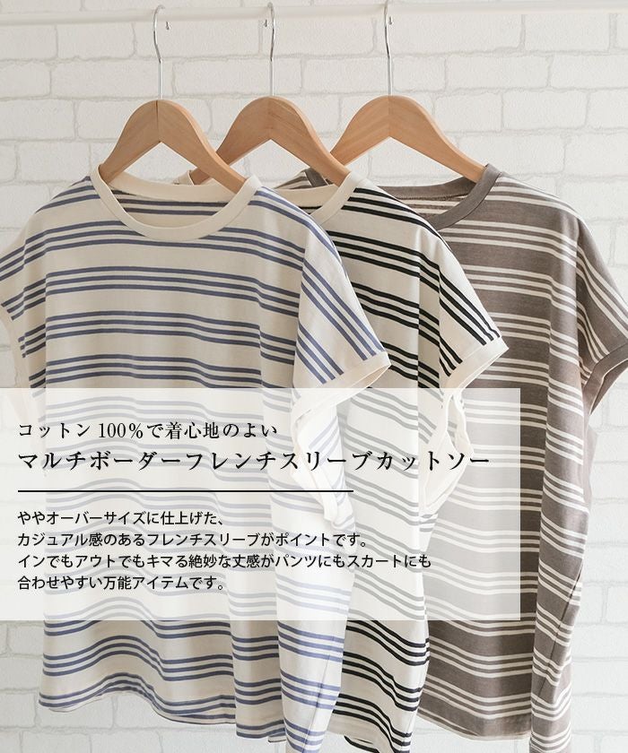 送料無料 マルチボーダーフレンチスリーブカットソー 春 夏 秋 ≪ゆうメール便配送20・代引不可≫ | アクアガレージ aquagarage