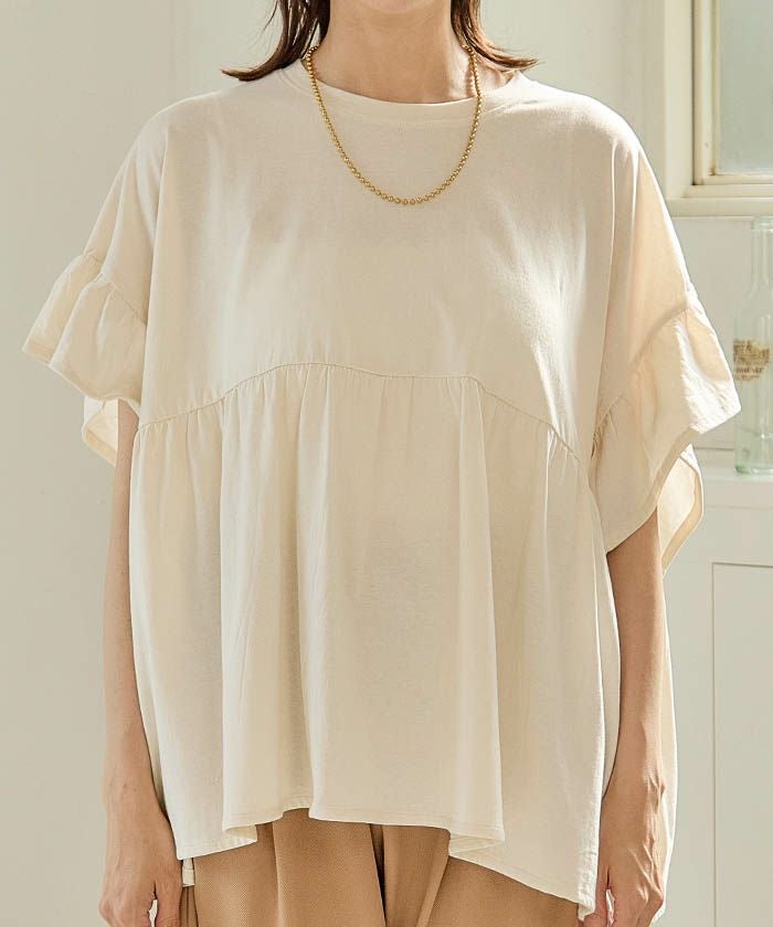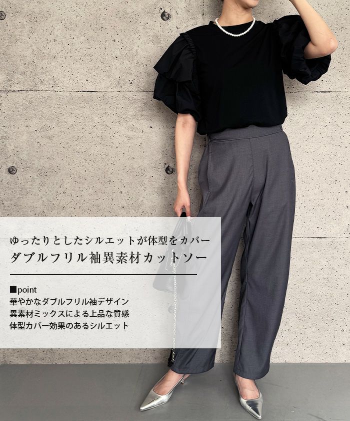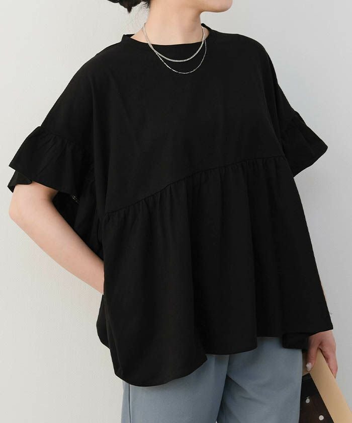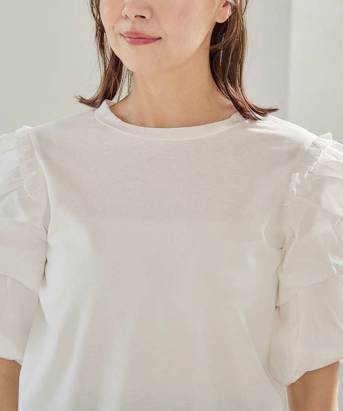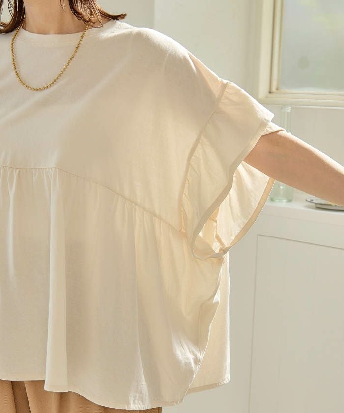 送料無料 ダブルフリル袖異素材カットソー 春 夏 ≪ゆうメール便配送30・代引不可≫ | アクアガレージ aquagarage