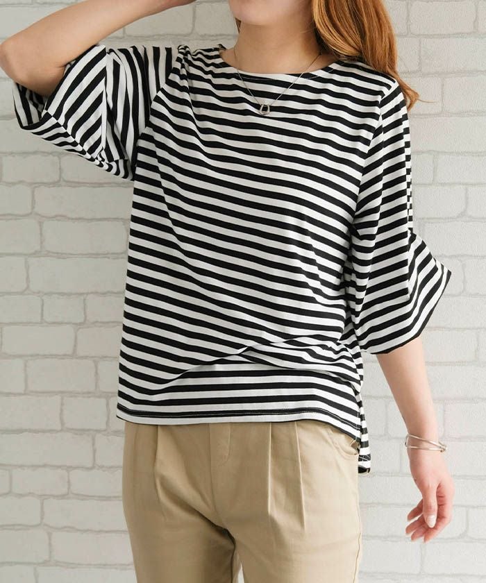 送料無料 フレア袖カットソー 無地 ボーダー ≪ゆうメール便配送20・代引不可≫ | アクアガレージ aquagarage