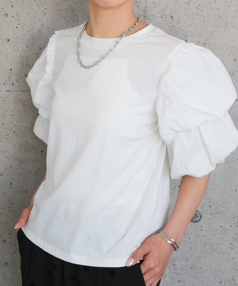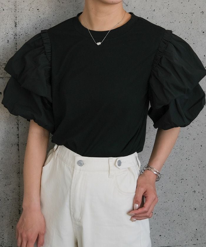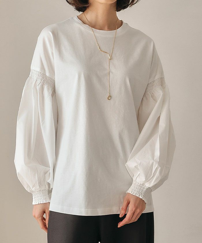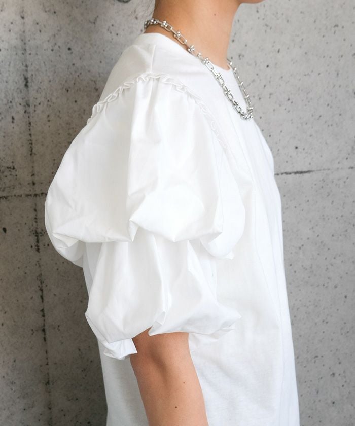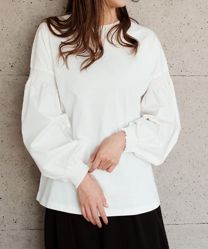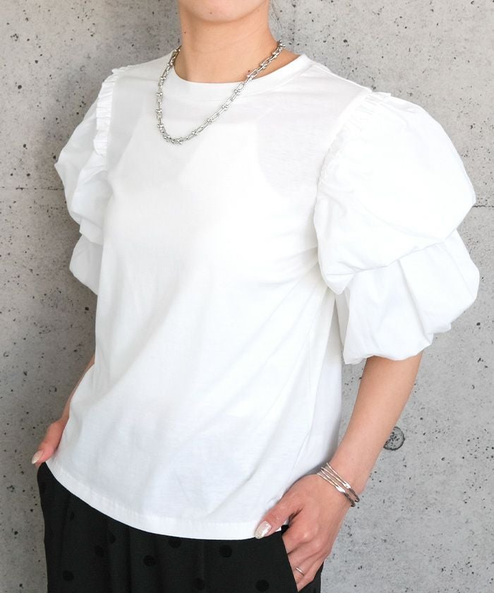 送料無料 異素材MIXパフスリーブカットソー 春 秋 冬 ≪ゆうメール便配送30・代引不可≫ | アクアガレージ aquagarage
