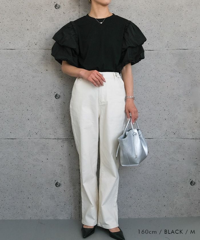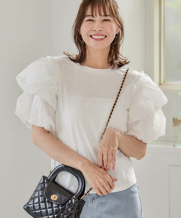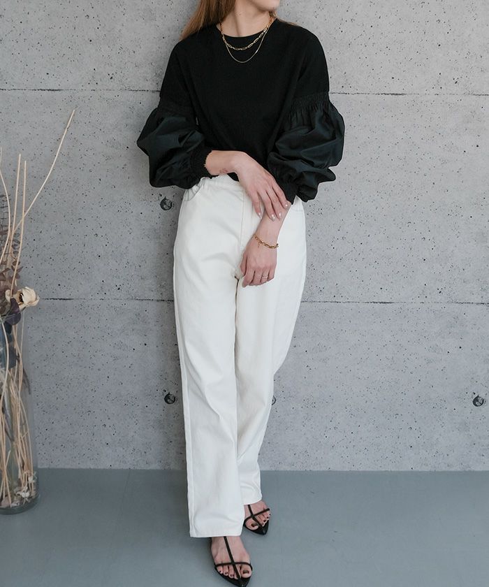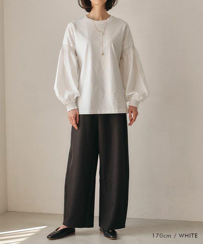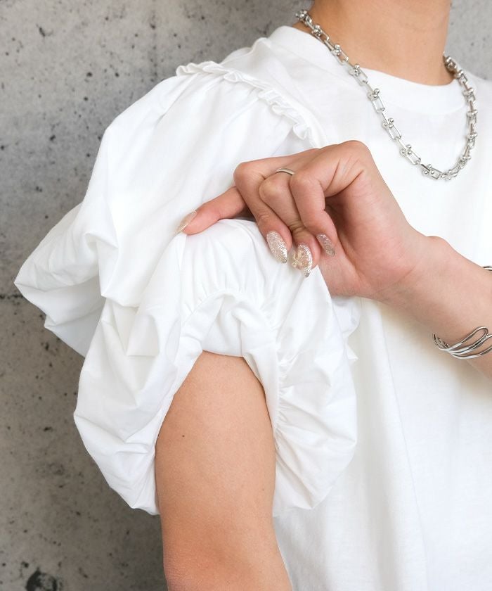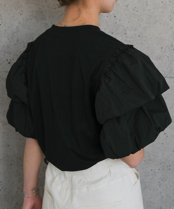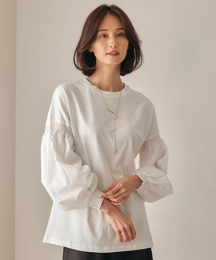 送料無料 異素材MIXパフスリーブカットソー 春 秋 冬 ≪ゆうメール便配送30・代引不可≫ | アクアガレージ aquagarage