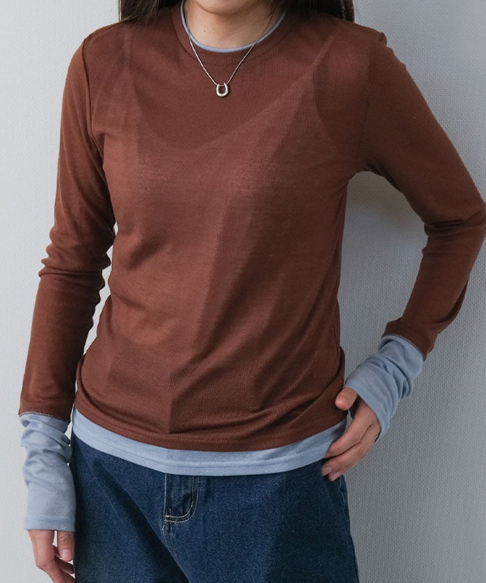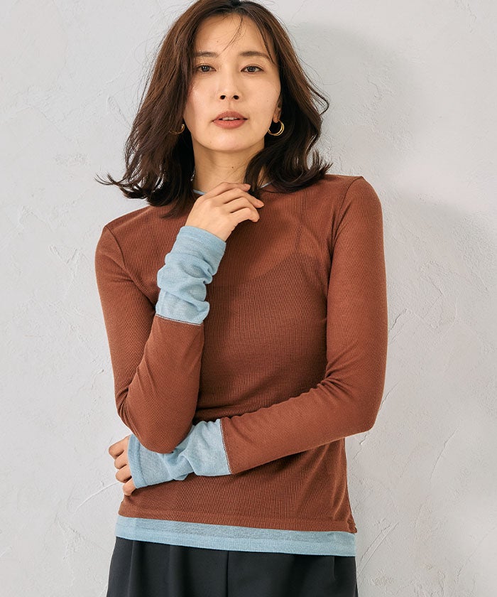 送料無料 配色レイヤード風シアートップス 春 秋 冬 M レディース ≪ゆうメール便配送10・代引不可≫ | | アクアガレージ aquagarage