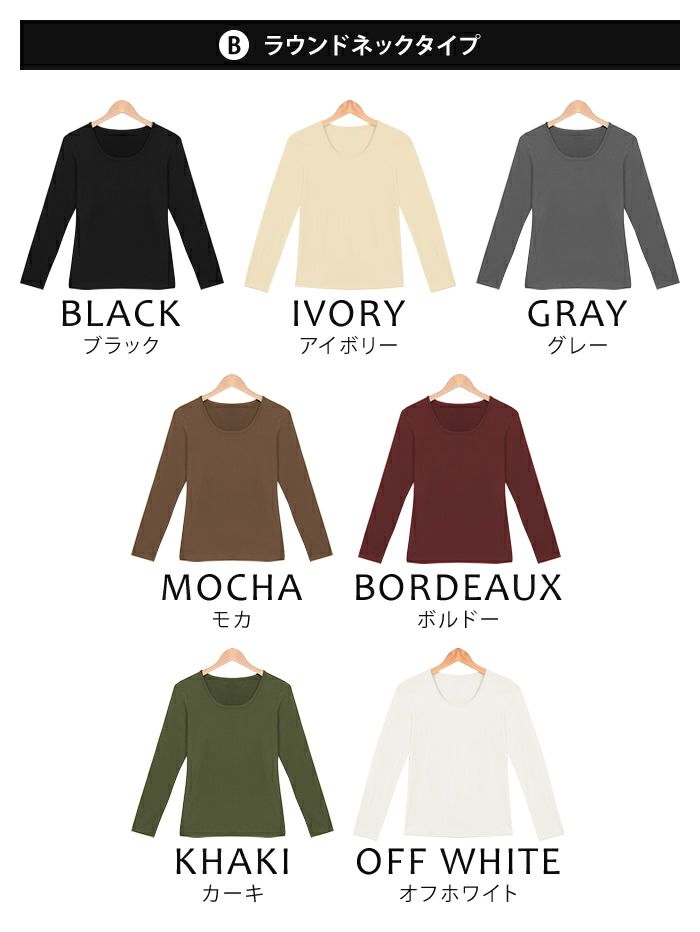 送料無料 選べる3タイプ&8カラー裏起毛インナー Vネック ラウンドネック タートルネック M L LL 3L ≪ゆうメール便配送20・代引不可≫ | アクアガレージ aquagarage