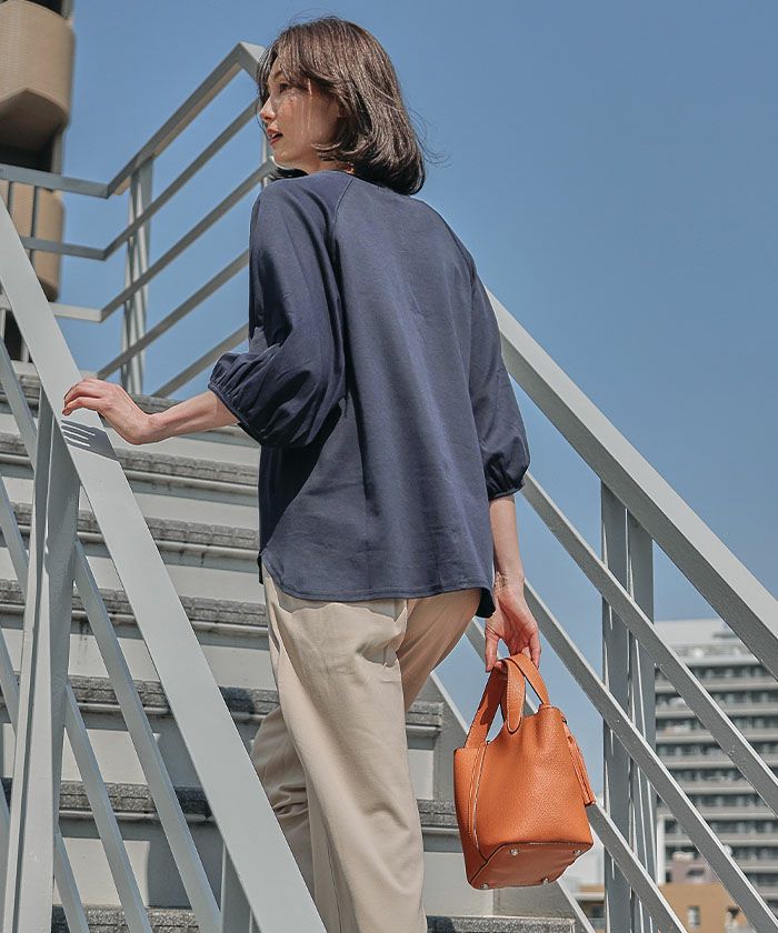 【最終値下げ価格】【セットアップ可】ツイル2wayキーネックパフスリーブトップス レディース 春 夏 秋 M | アクアガレージ aquagarage