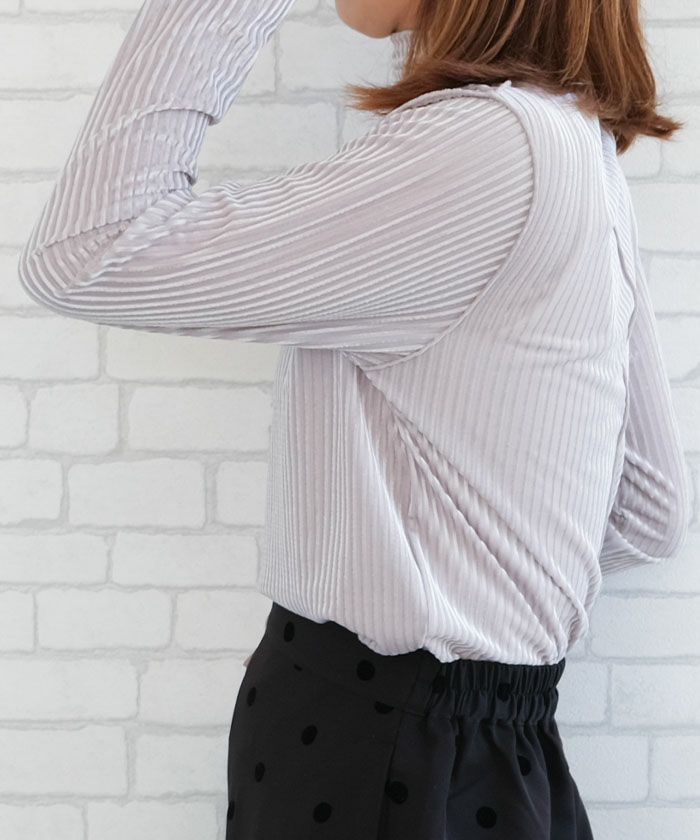送料無料 シアーベロアストライプ2wayメロートップス 春 秋 冬 M レディース ≪ゆうメール便配送20・代引不可≫ | | アクアガレージ aquagarage