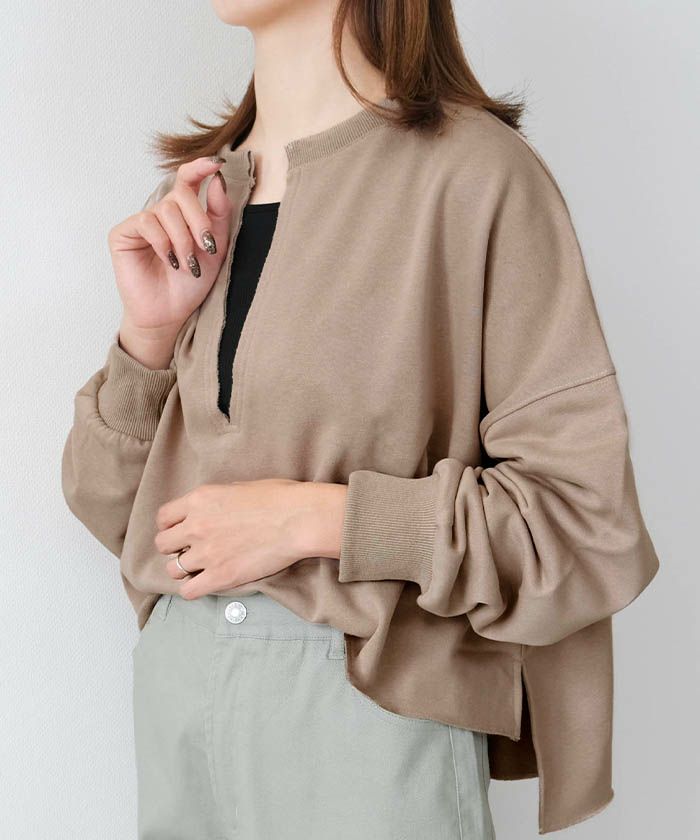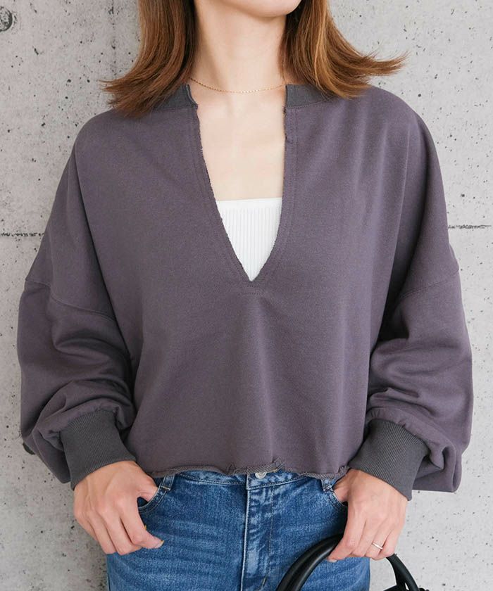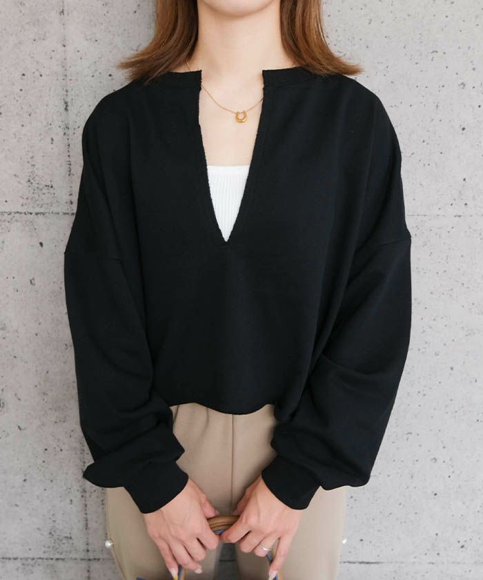 裏毛深キーネックショートトップス レディース | アクアガレージ aquagarage