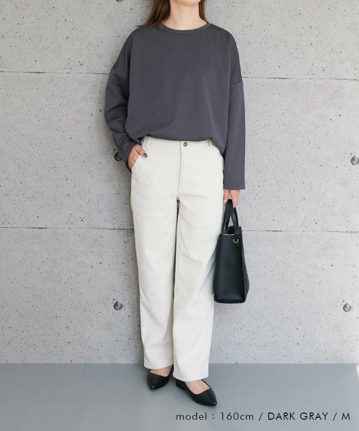 送料無料 【セットアップ可】\らくかる/コーデュロイ裾スリットトップス M L 長袖 レディース ≪ゆうメール便配送30・代引不可≫ | アクアガレージ aquagarage