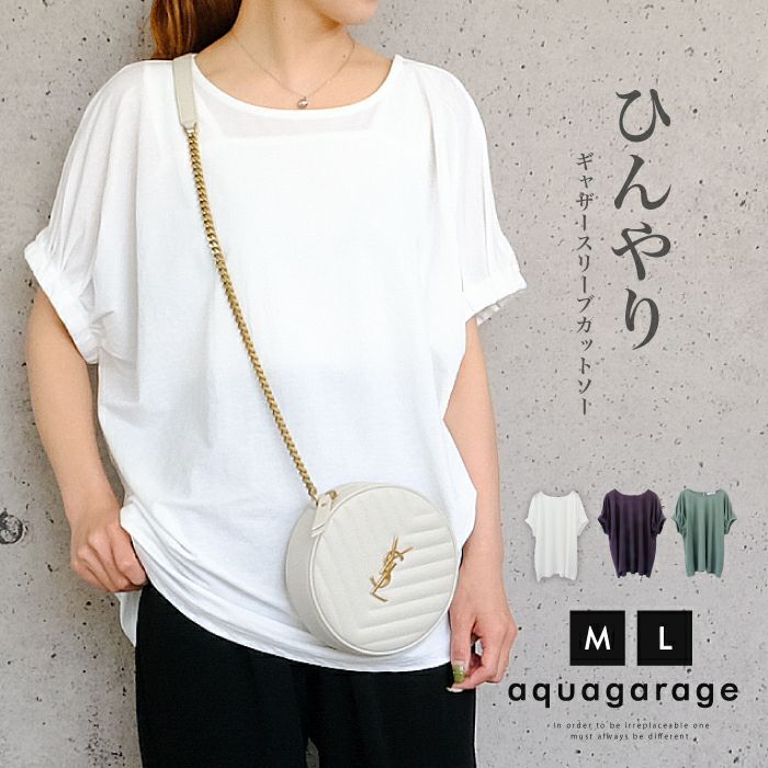 送料無料 接触冷感ギャザースリーブカットソー M L レディース ≪ゆうメール便配送30・代引不可≫ | | アクアガレージ aquagarage