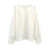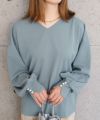 送料無料 梨地Vネック袖口パールカットソー レディース 春 秋 冬 M ≪ゆうメール便配送30・代引不可≫| アクアガレージ aquagarage