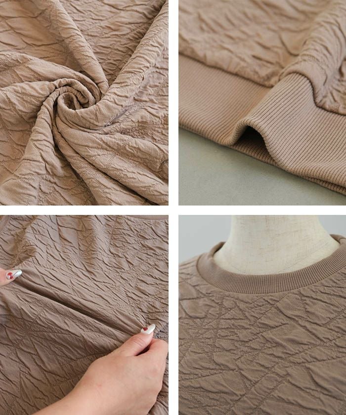 • 立体的なシルエットで体型選ばず着られる膨れジャガードトップス