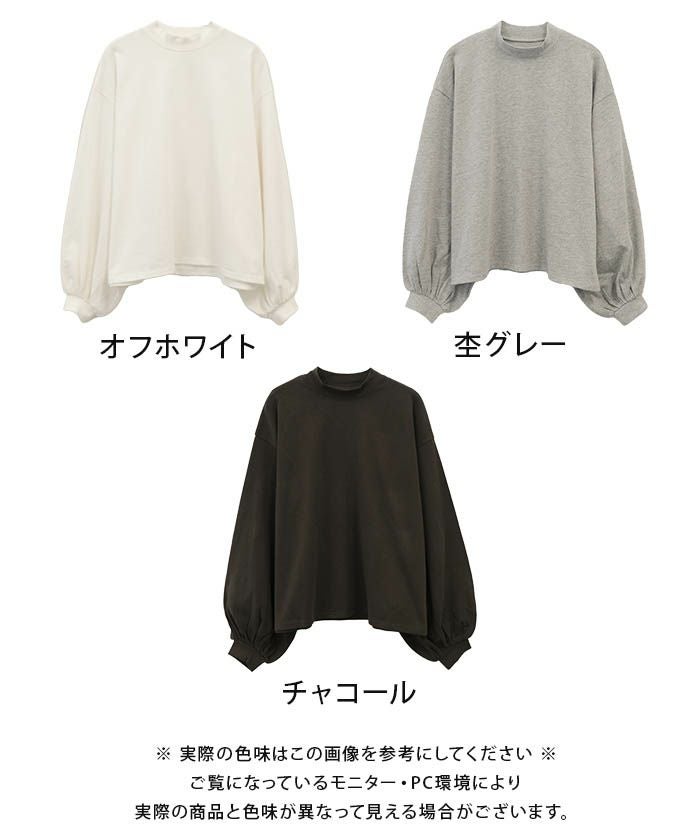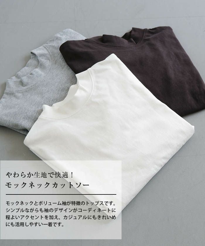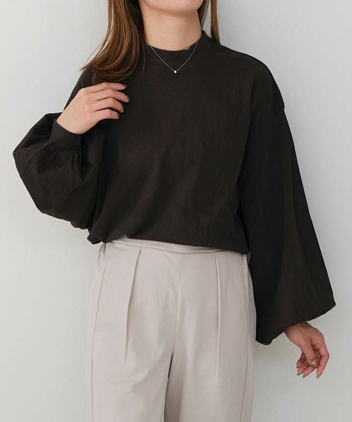 • やわらか生地で快適!モックネックボリュームスリーブカットソー
