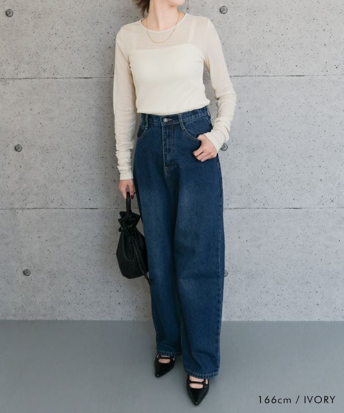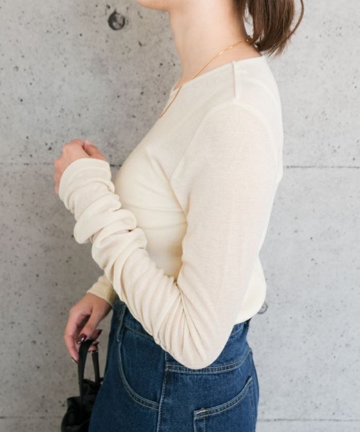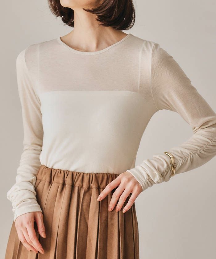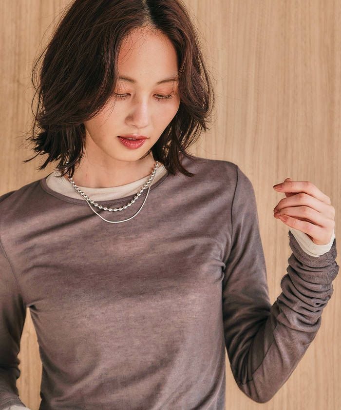 さらっとした軽やかな着心地で、トップスは勿論、インナー使いとしても優秀な1着です。