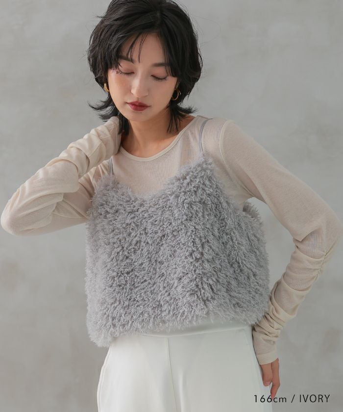 • 袖シャーリングフラッフィーシアートップス