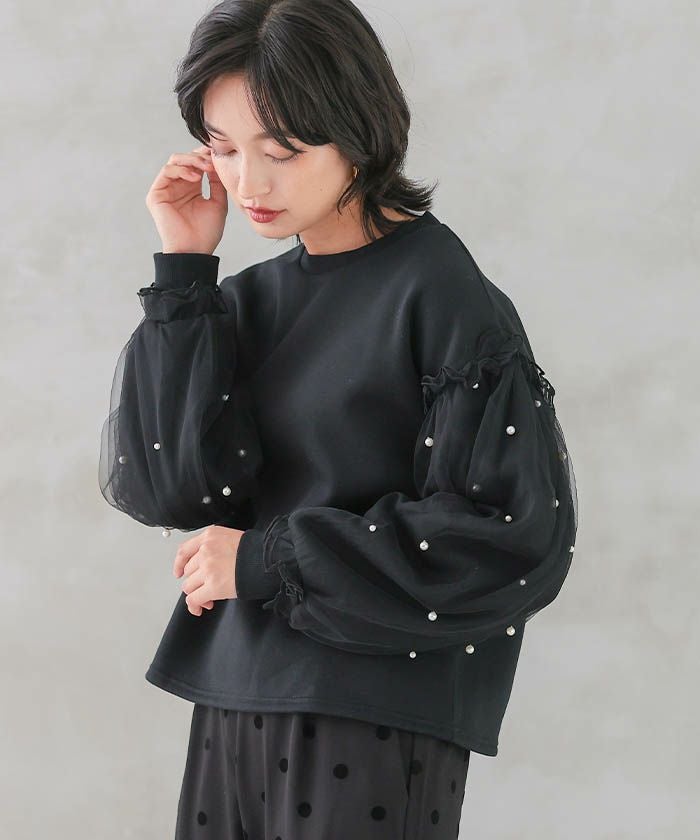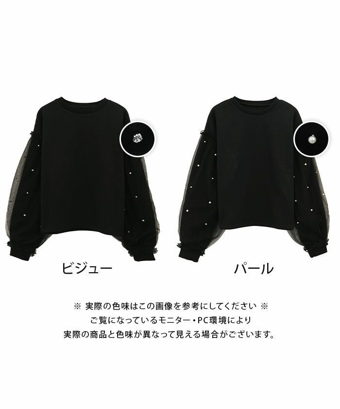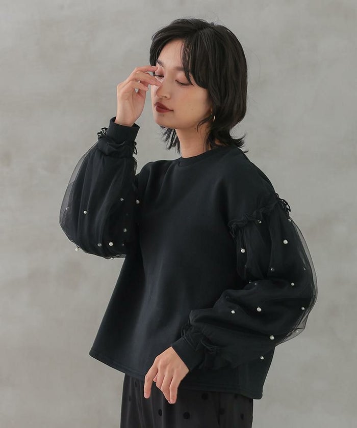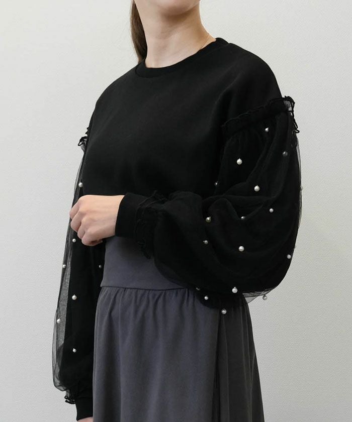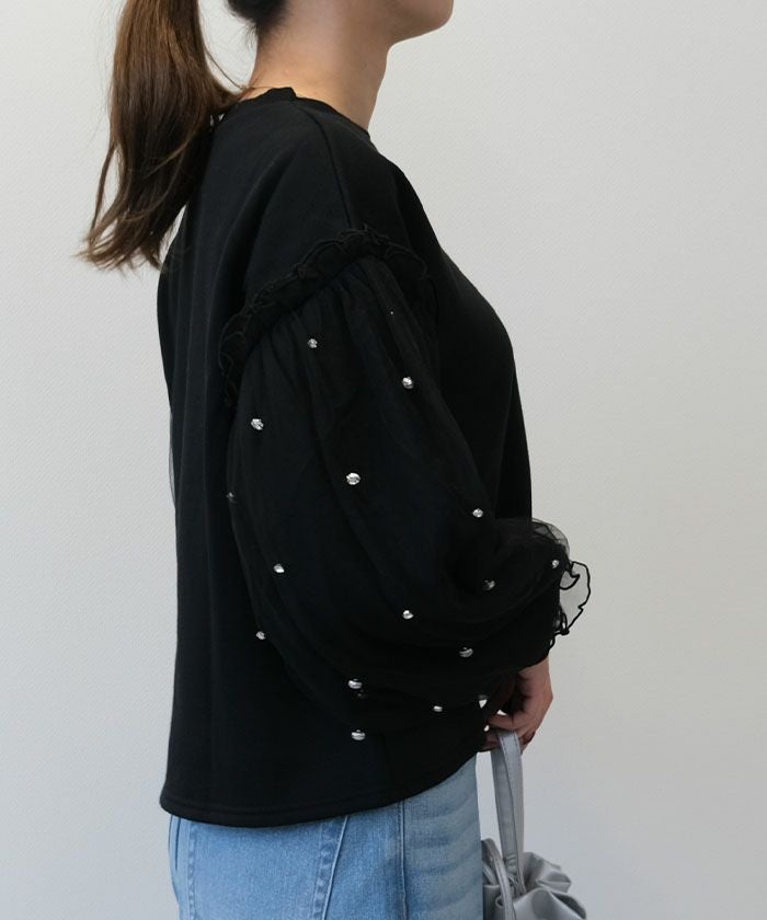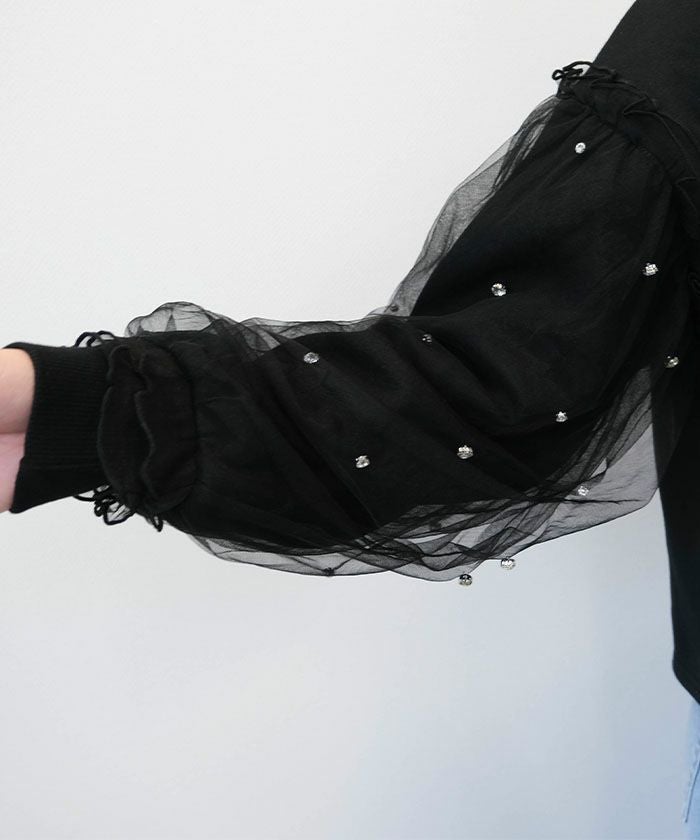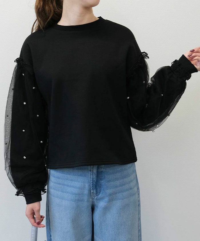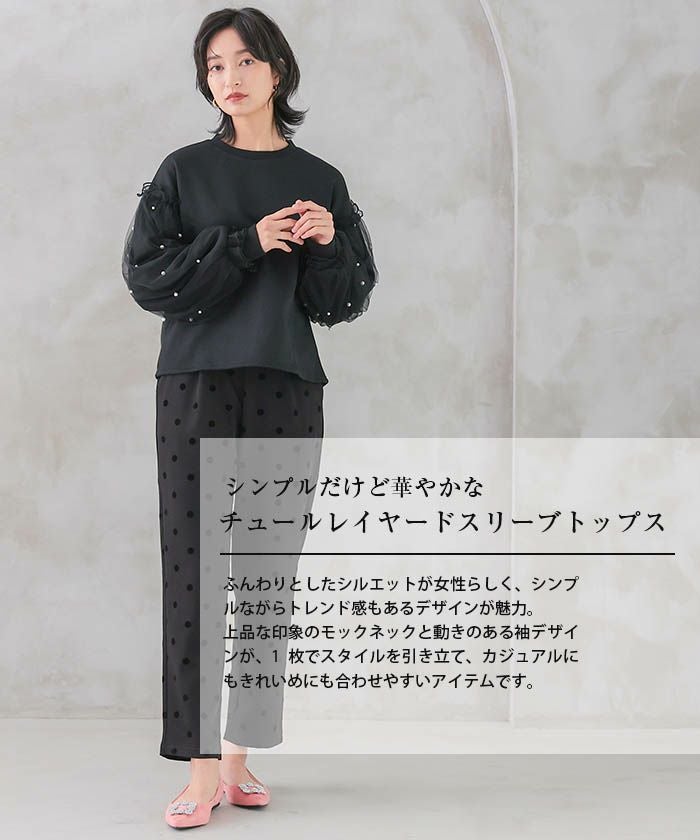 • シンプルだけど華やかなチュールレイヤードスリーブトップス