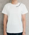 首元に施された小さなロゴ刺繍が目を引くTシャツ。