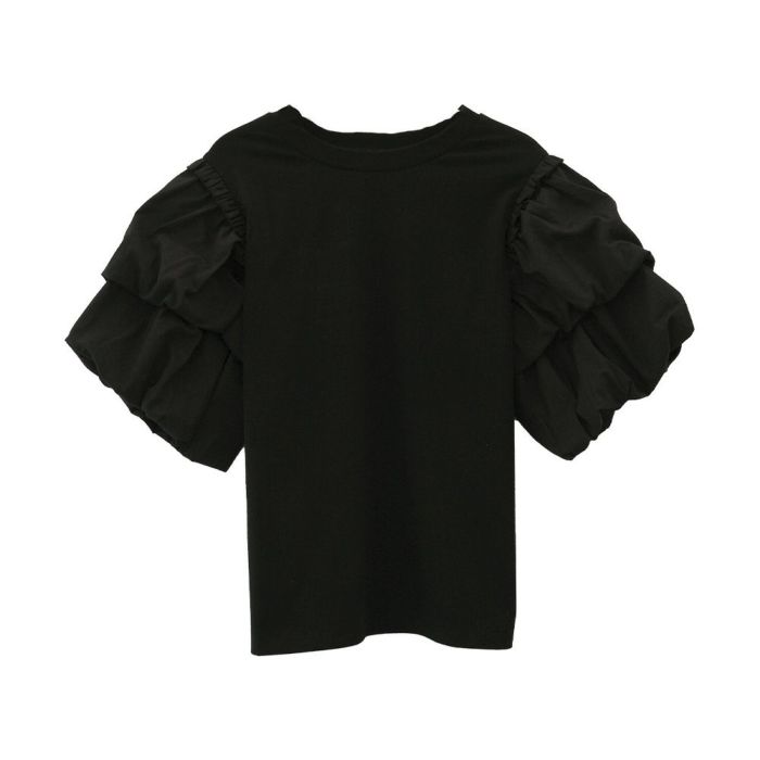 袖に施されたダブルフリルが特徴で、ボリュームスリーブが女性らしさを引き立てます。