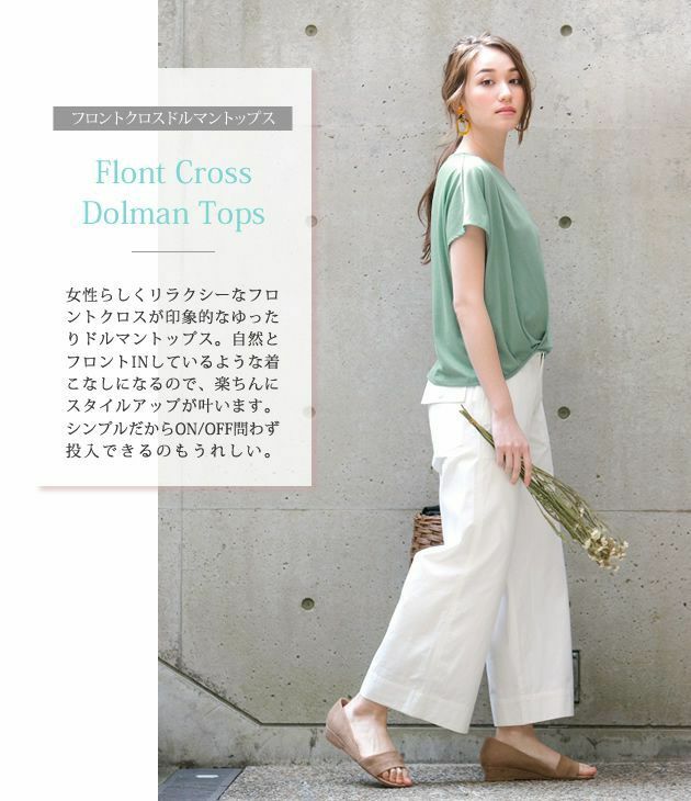 気になる二の腕をカバーするドルマンスリーブと、フロント裾タックでこなれ感のあるシルエットに。