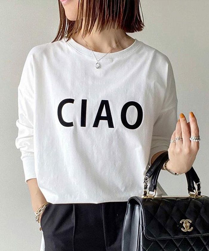 • カジュアルなロゴがスタイリングのポイントになる長袖ロゴTシャツ