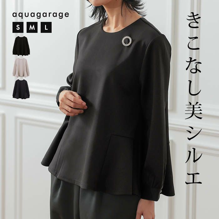 送料無料 袖パール付きペプラムトップス 長袖 レディース ≪ゆうメール便配送30・代引不可≫ | アクアガレージ aquagarage