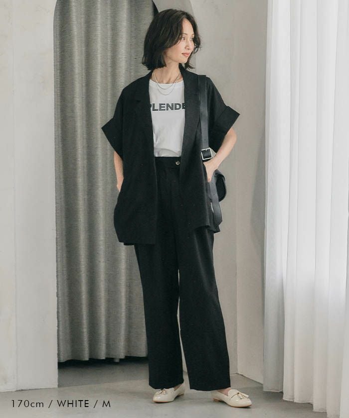 ​また、ワイドパンツやテーパードパンツと合わせれば、きれいめな印象に。