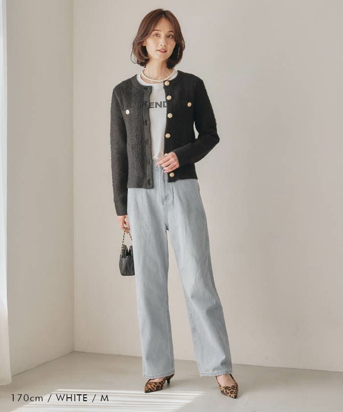 デニムと合わせた定番のカジュアルスタイルはもちろん、フレアスカートやプリーツスカートと組み合わせてフェミニンなコーディネートも楽しめます。