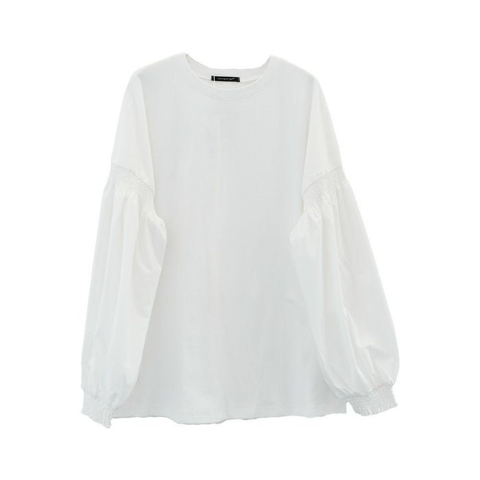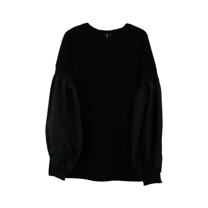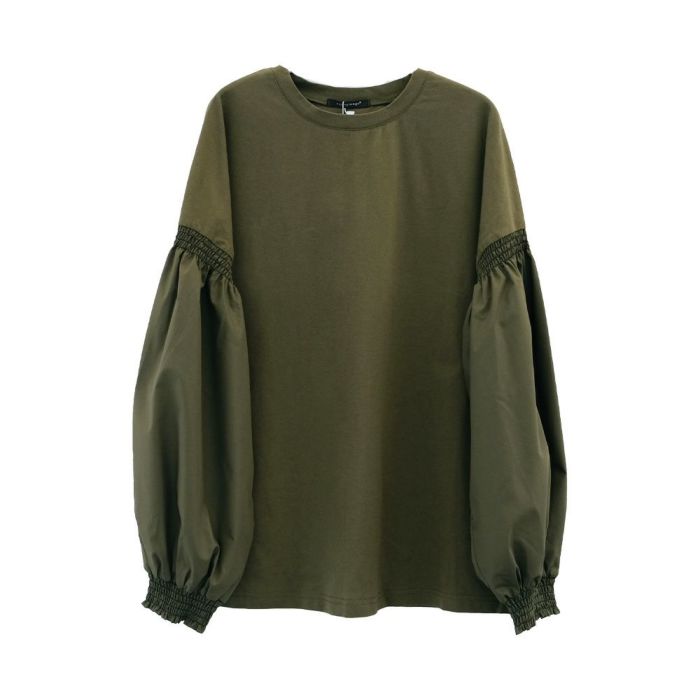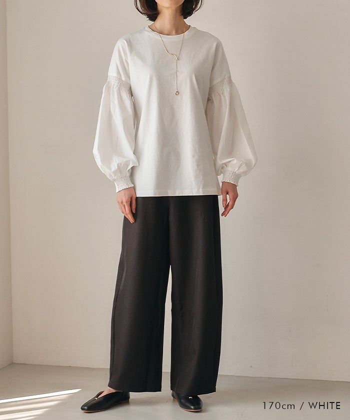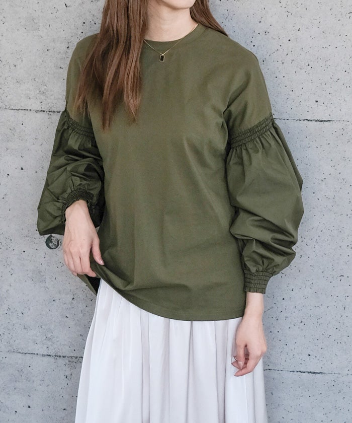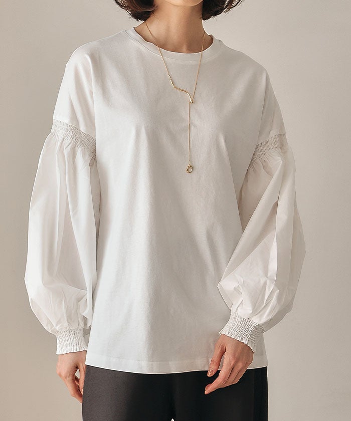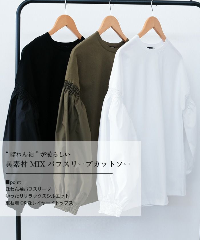 “ぽわん袖”が愛らしい異素材MIXパフスリーブカットソー。