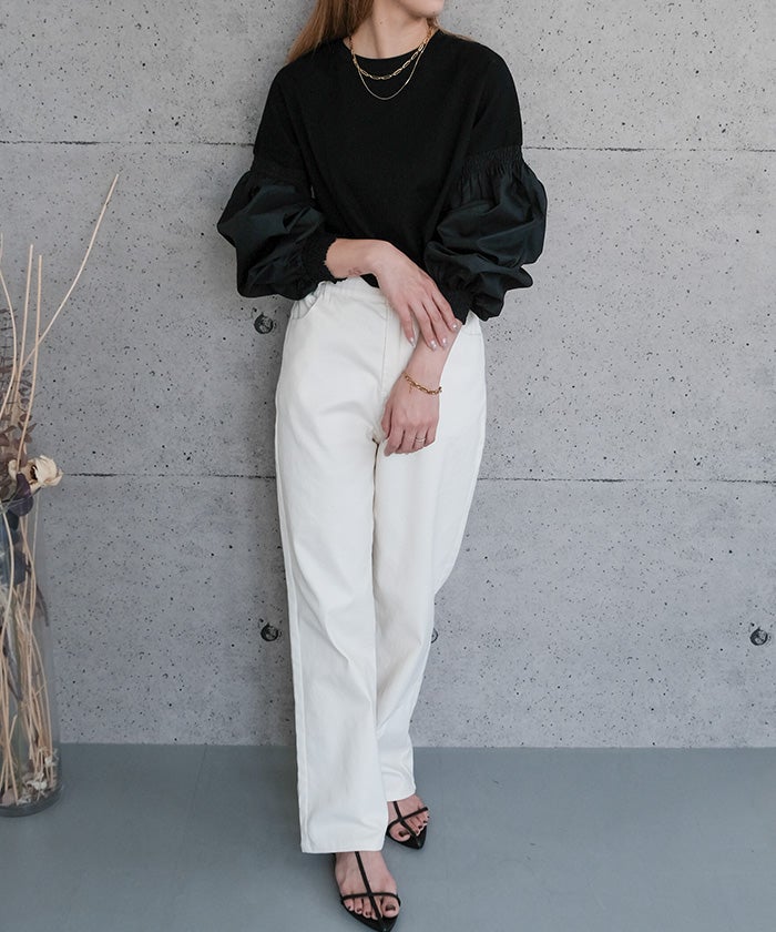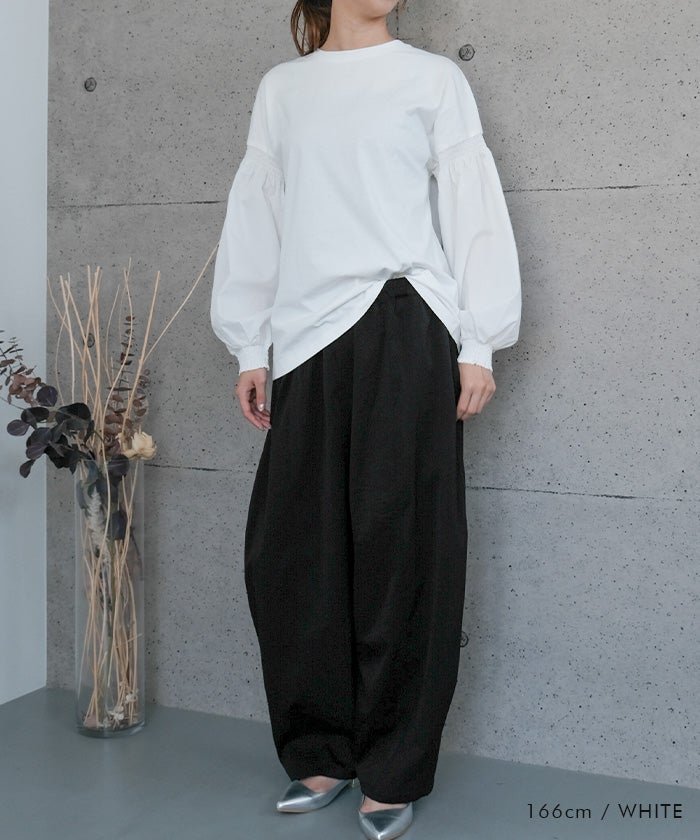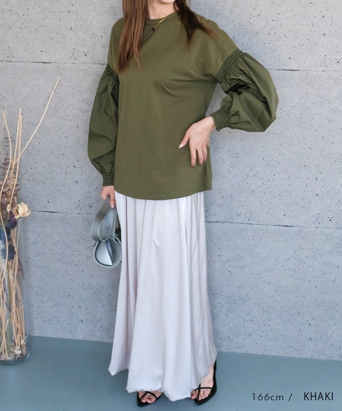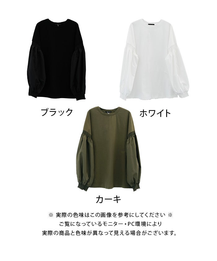 異素材MIXパフスリーブカットソー 春 秋 冬 ≪ゆうメール便配送30・代引不可≫ | アクアガレージ aquagarage