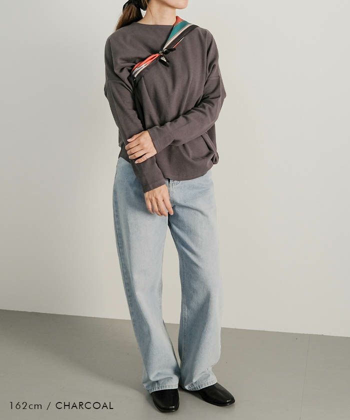 ほどよくゆとりを持たせた身幅とドロップショルダーで、抜け感のあるナチュラルな雰囲気に仕上げました。