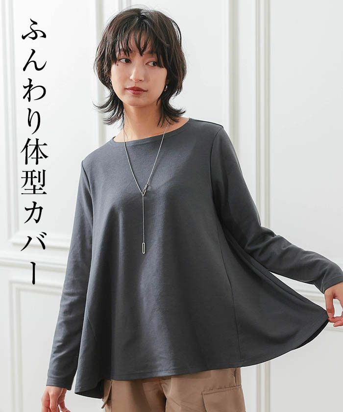 • ふんわり体系カバー!AラインロングTシャツ