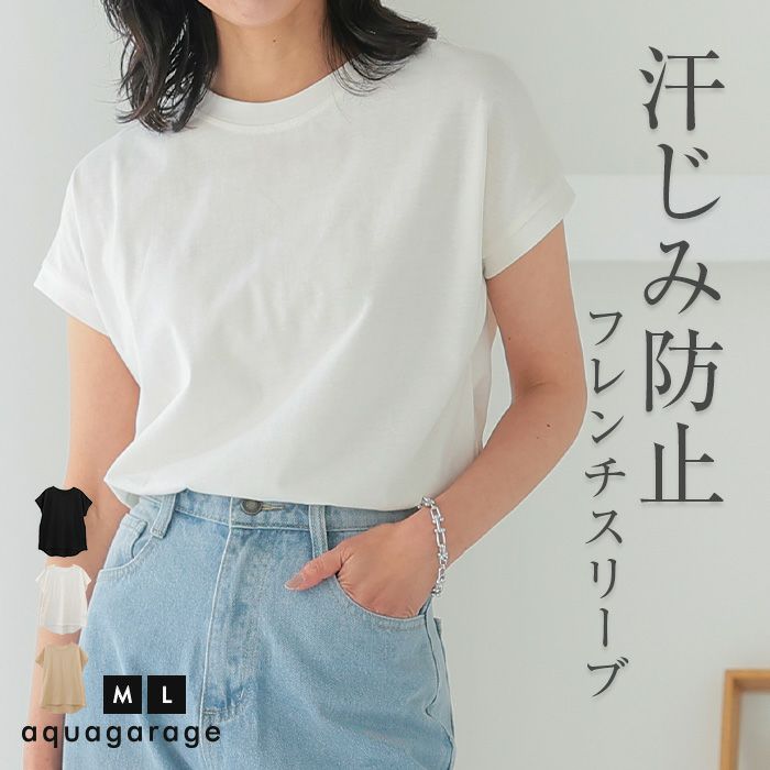 送料無料 汗染み防止フレンチスリーブトップス 春 夏 M L ≪ゆうメール便配送10・代引不可≫ | アクアガレージ aquagarage