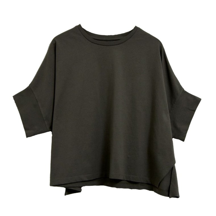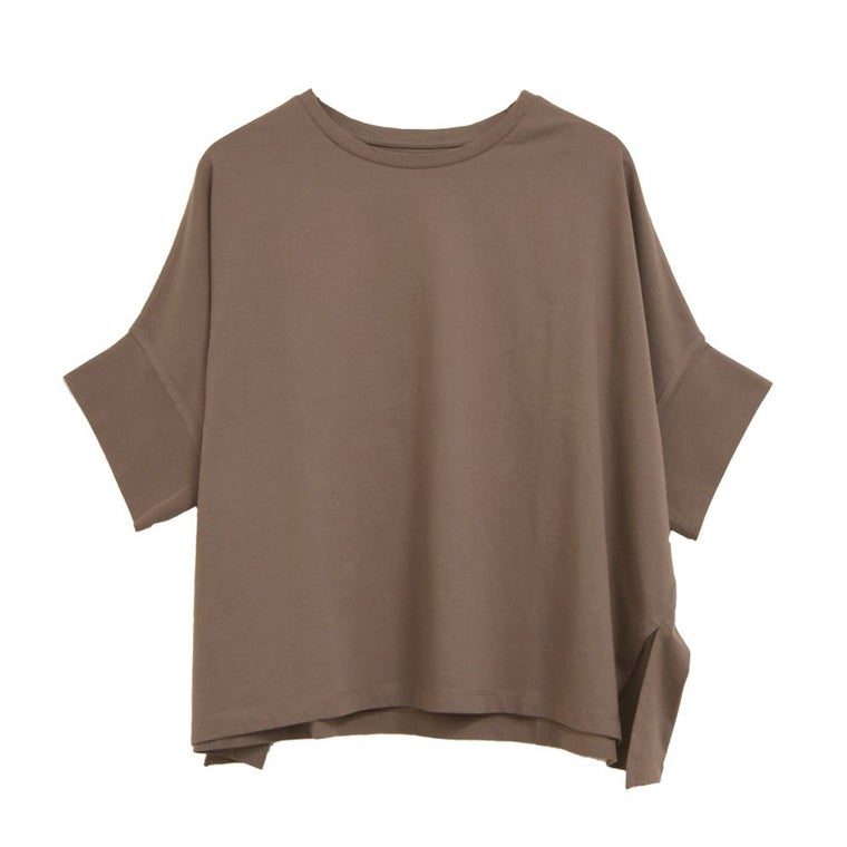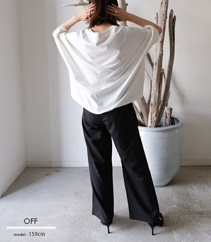 ゆるっとオーバーシルエットで体型カバーも◎ 抜け感 のあるドルマンスリーブとクルーネックでシンプルなデザインが大人のスタイリングにぴったりです。