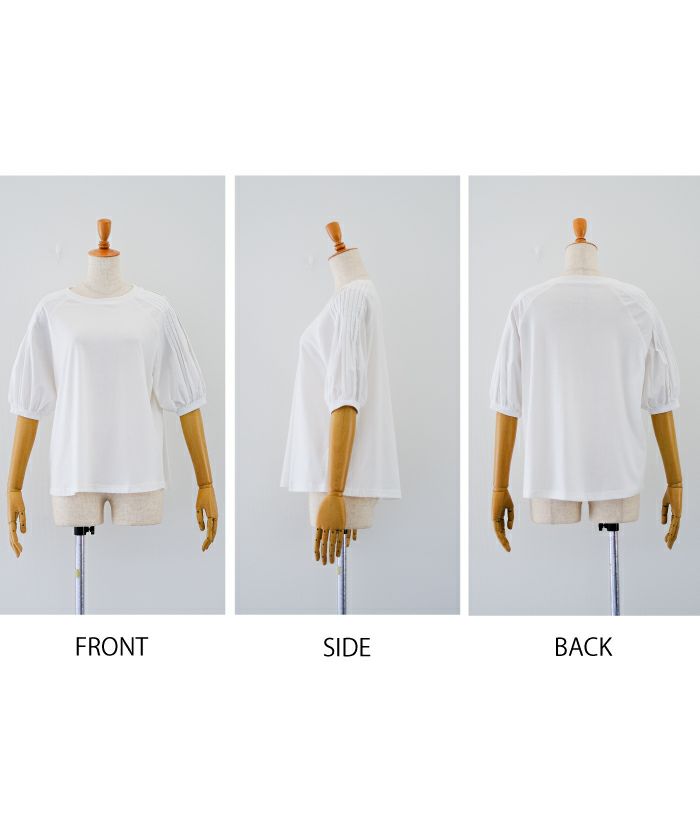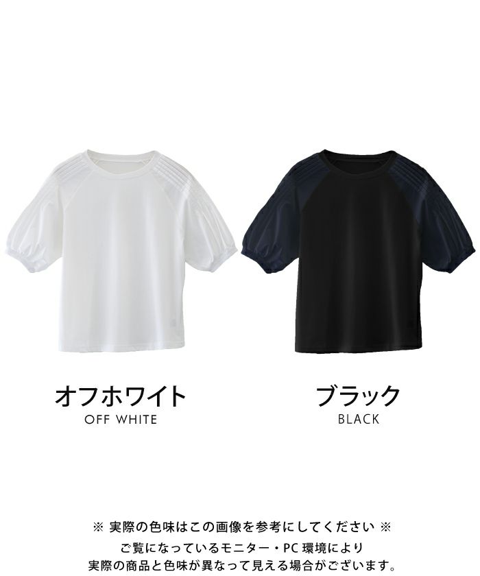 • ふんわりと女性らしいシルエット!異素材ミックスプリーツスリーブカットソー