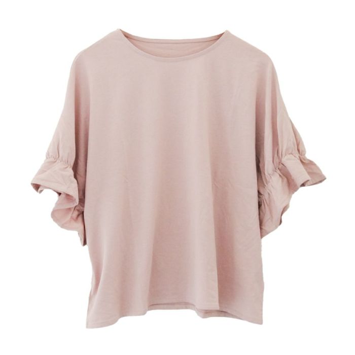 • 袖ギャザーで二の腕をスッキリ華奢魅せ!ギャザーフリル袖カットソー