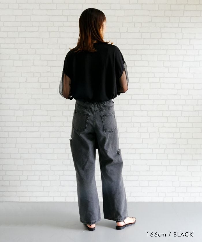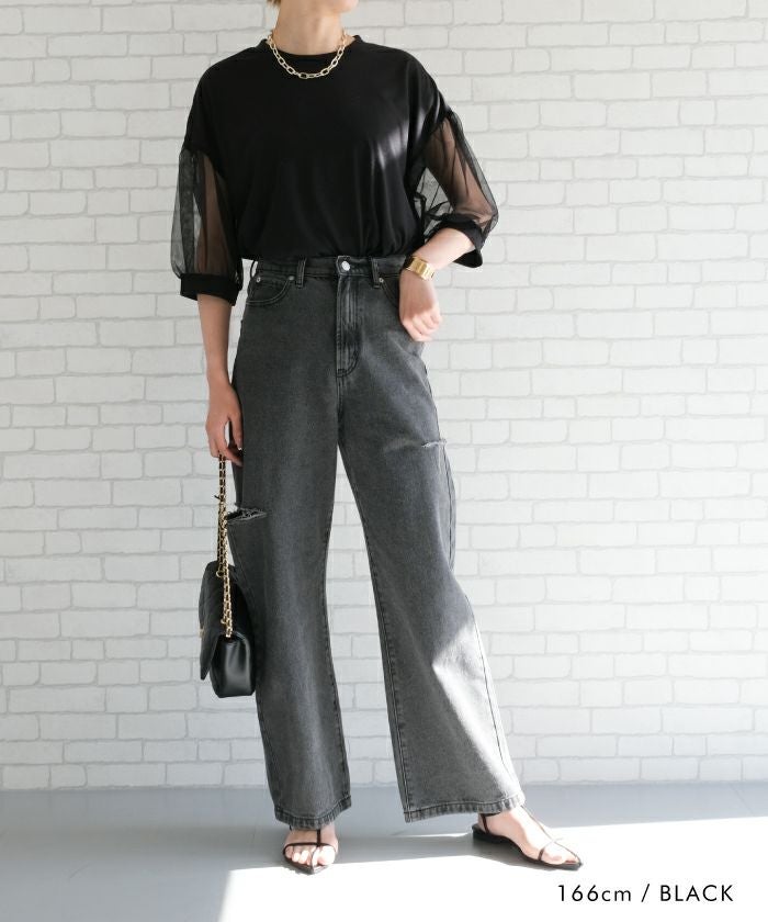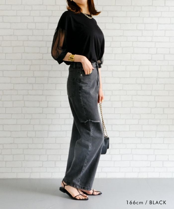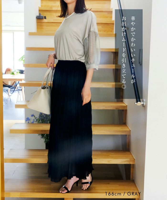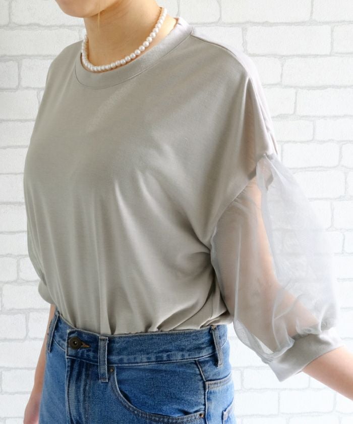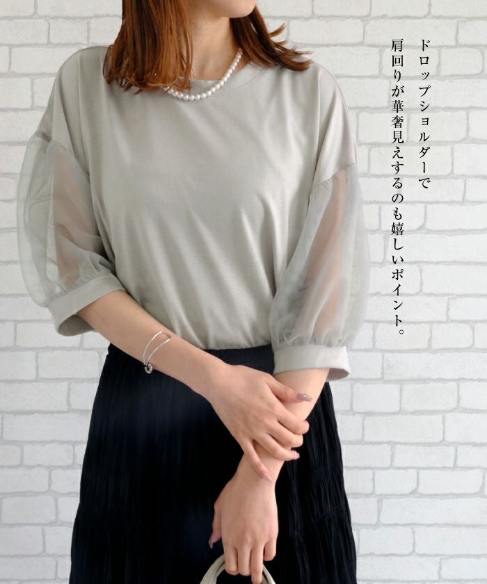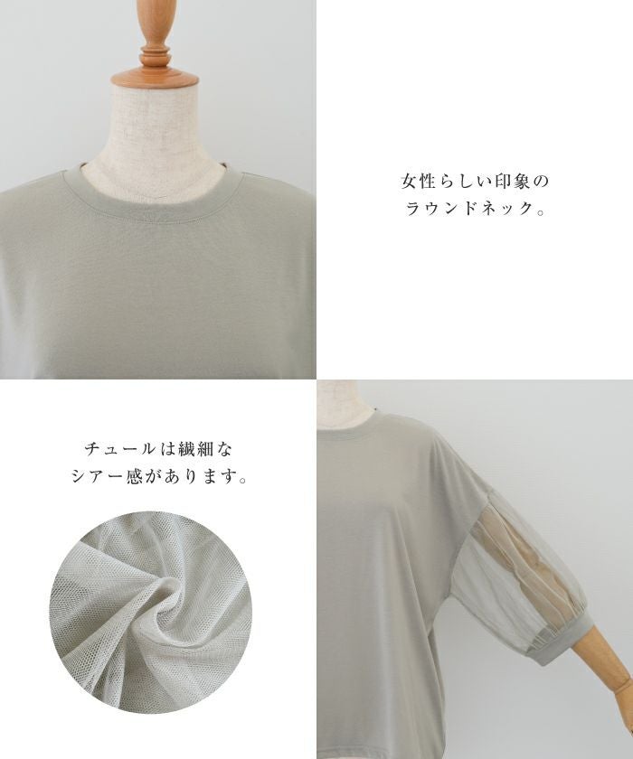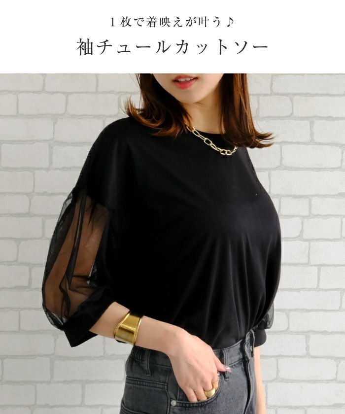 送料無料 袖チュールカットソー レディース 春 夏 M ≪ゆうメール便配送20・代引不可≫ | アクアガレージ aquagarage