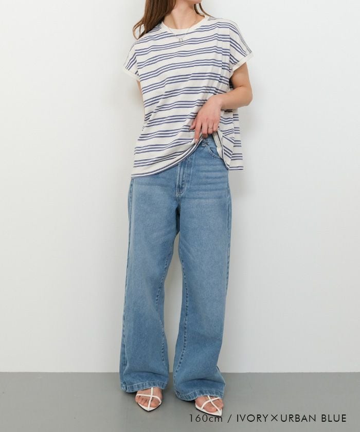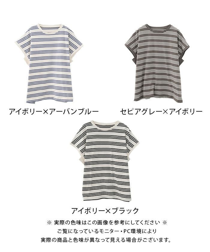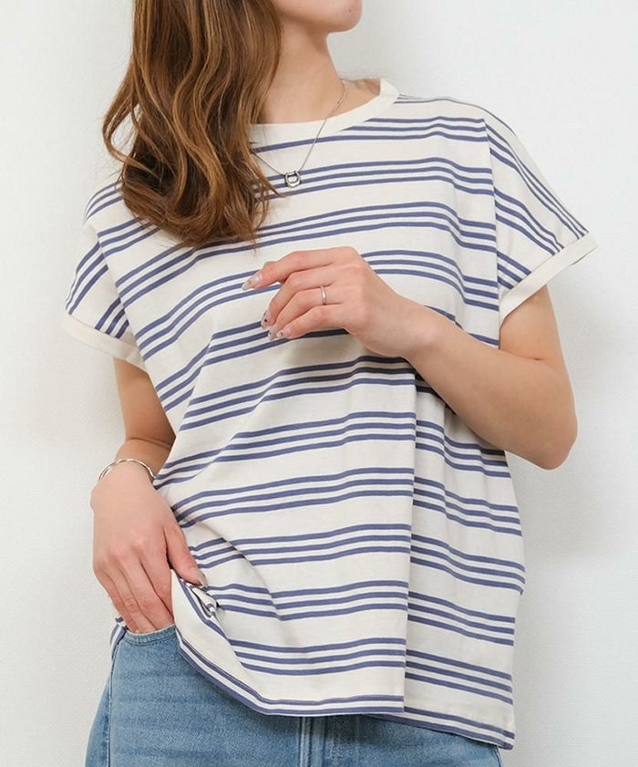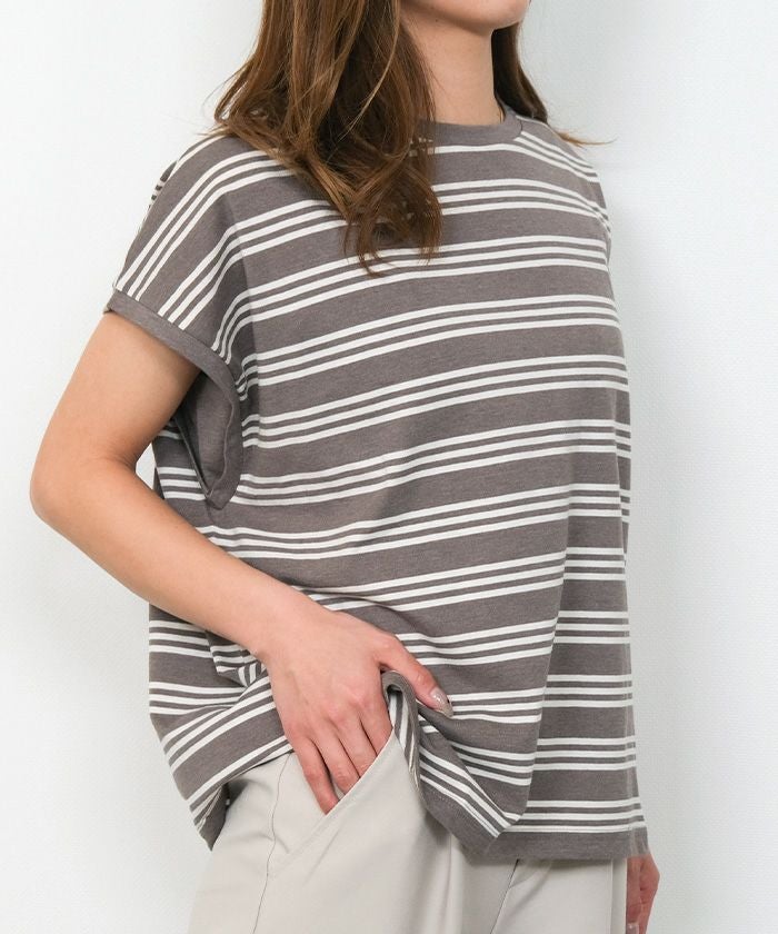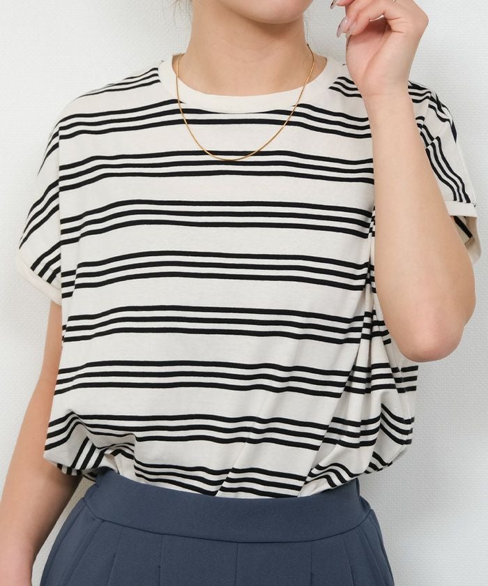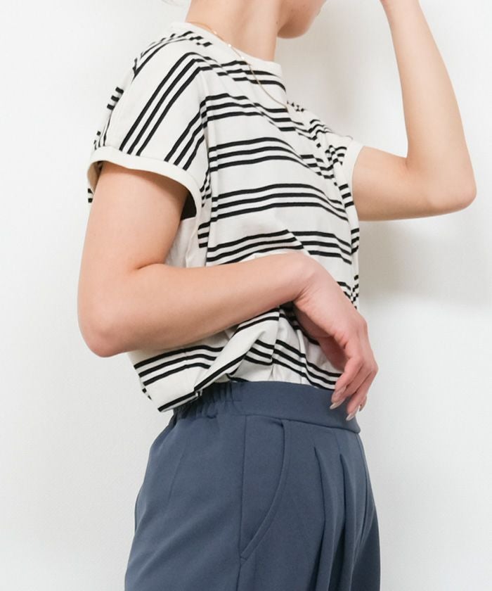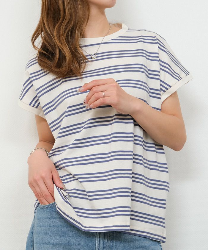• コットン100%で着心地のよいマルチボーダーフレンチスリーブカットソー
