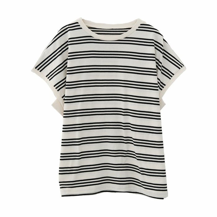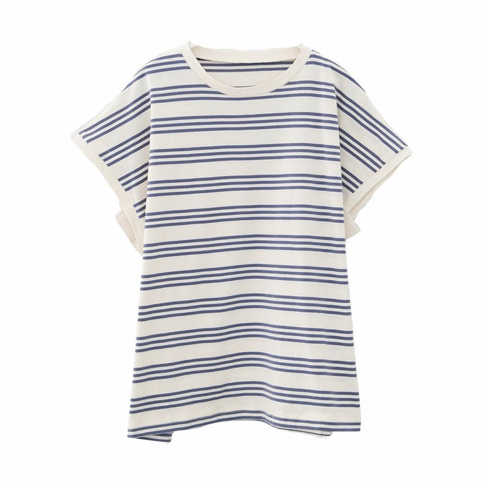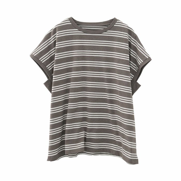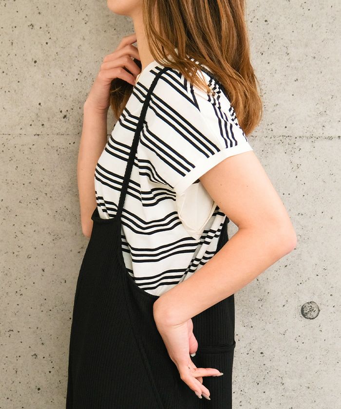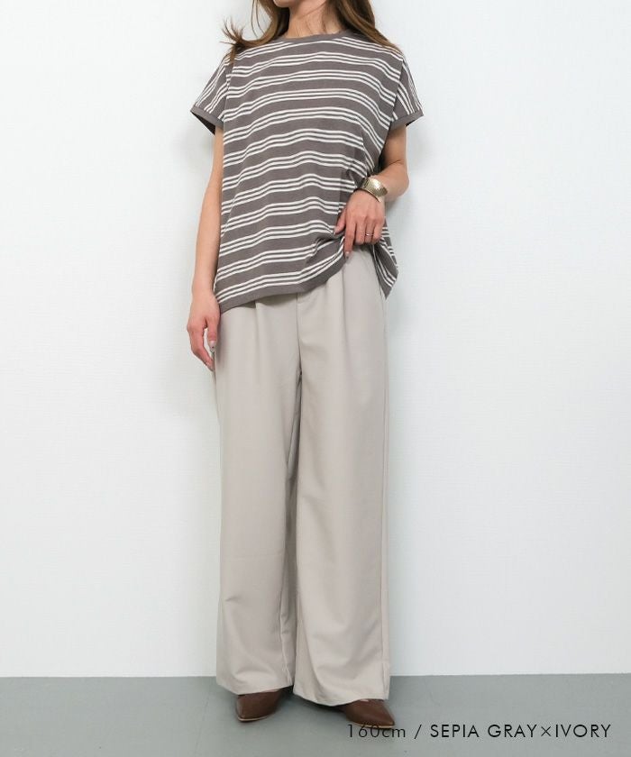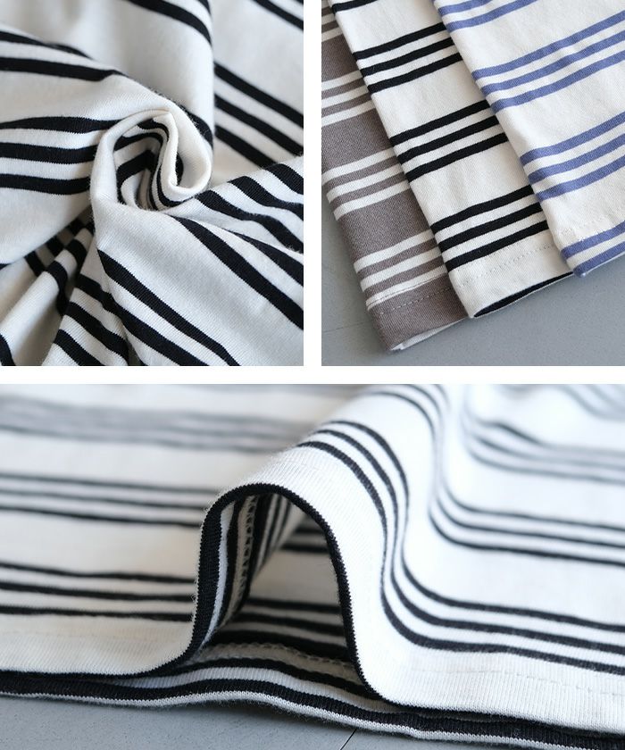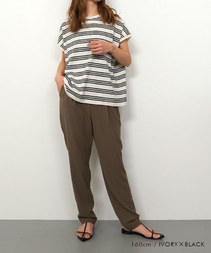 • コットン100%で着心地のよいマルチボーダーフレンチスリーブカットソー