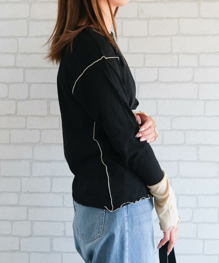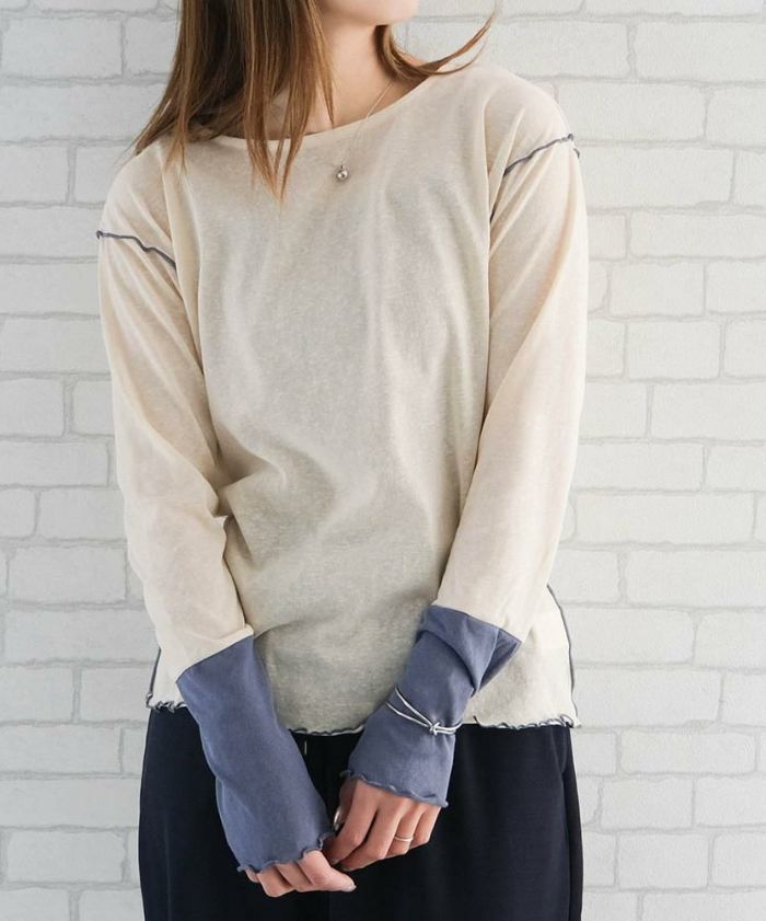 送料無料 配色シアーカットソー 春 秋 M レディース ≪ゆうメール便配送20・代引不可≫ | | アクアガレージ aquagarage