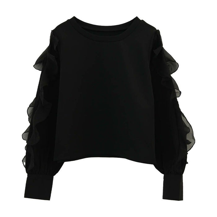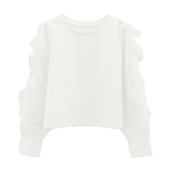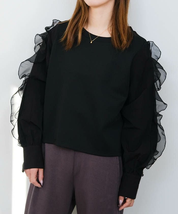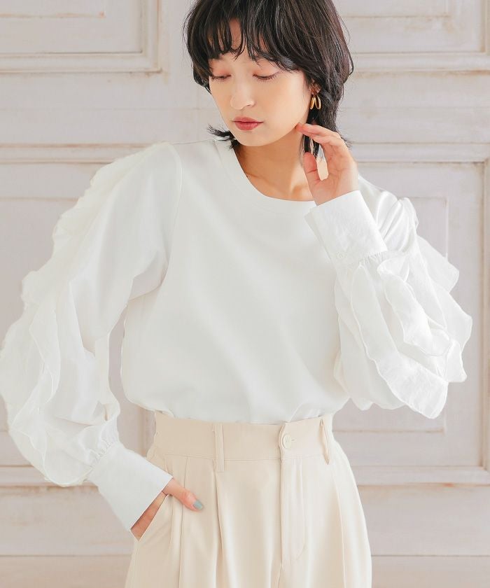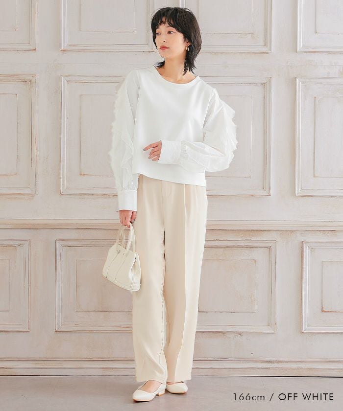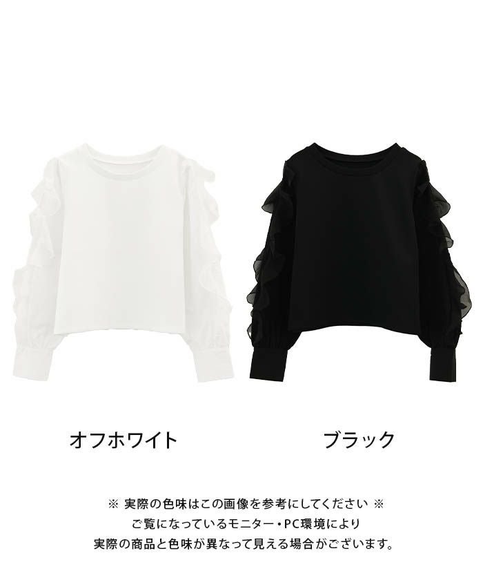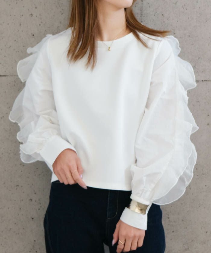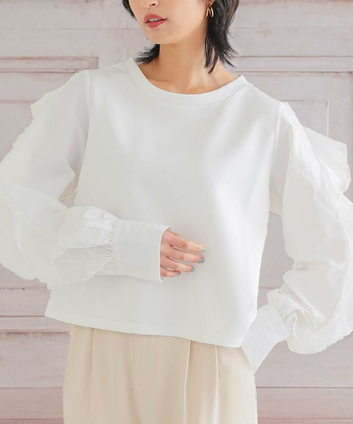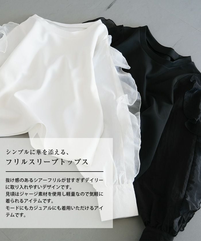 • シンプルに華を添える、フリルスリーブトップス