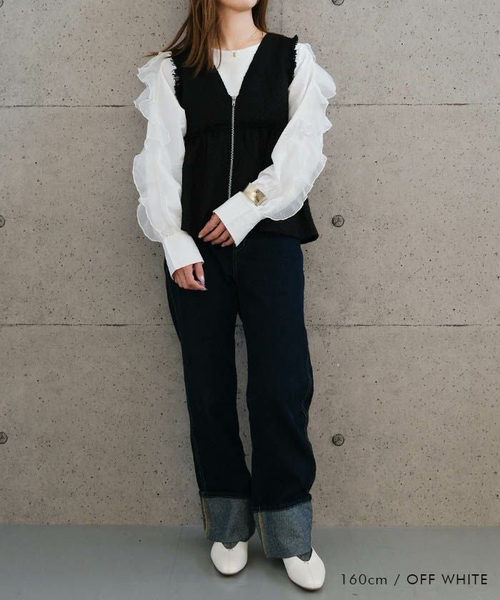 抜け感のあるシアーフリルが甘すぎずデイリーに取り入れやすいデザインです。