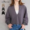 裏毛深キーネックショートトップス レディース | アクアガレージ aquagarage