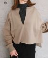 フロントに深くスリットが入って顔周りをすっきりと見せてくれるキーネックトップス。