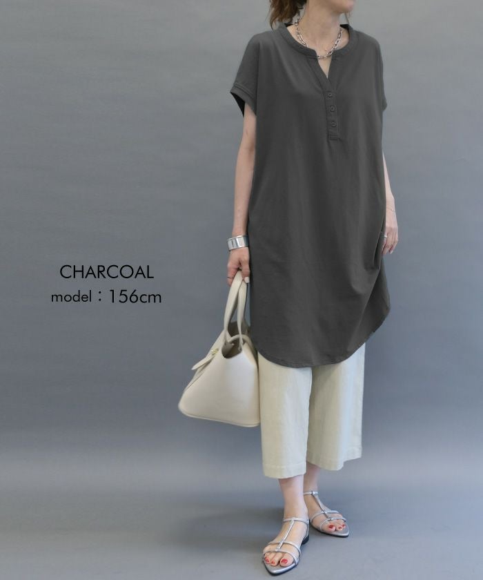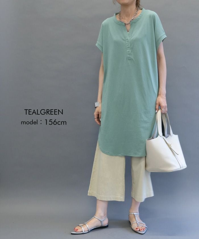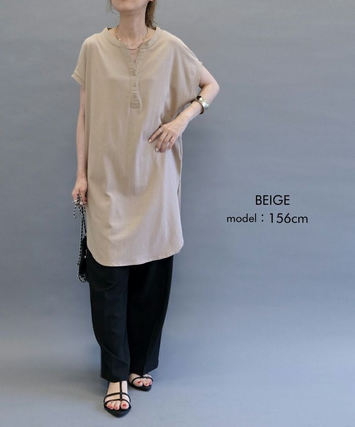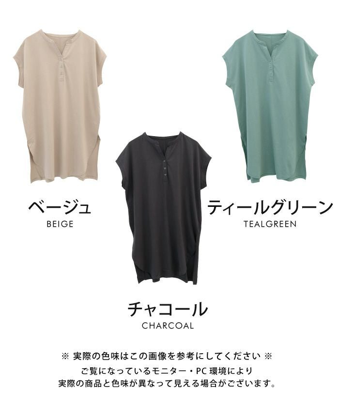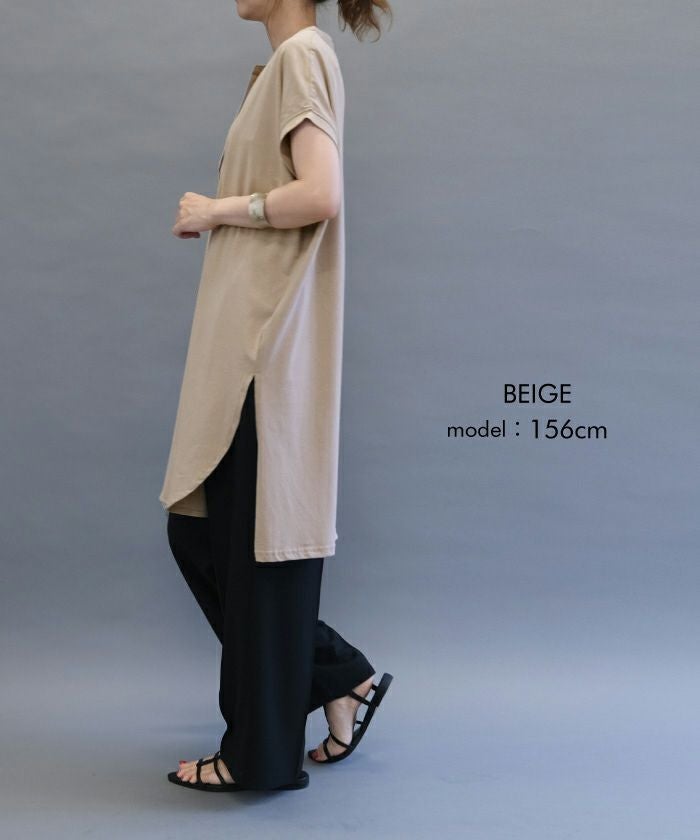 送料無料 キーネックカットソーチュニック レディース 春 夏 M ≪ゆうメール便配送10・代引不可≫ | アクアガレージ aquagarage