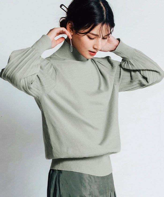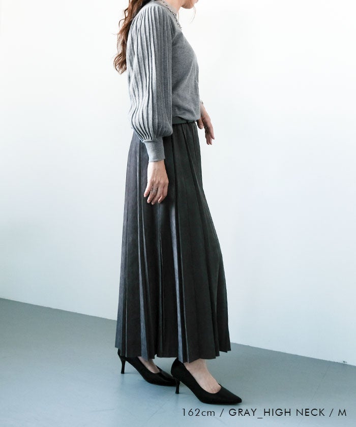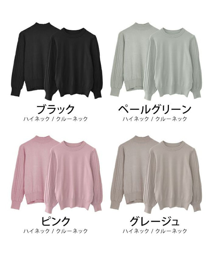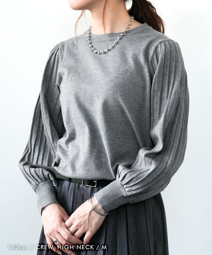 送料無料 ネックタイプが選べるプリーツ袖ニット レディース 春 秋 ≪ゆうメール便配送30・代引不可≫ | アクアガレージ aquagarage
