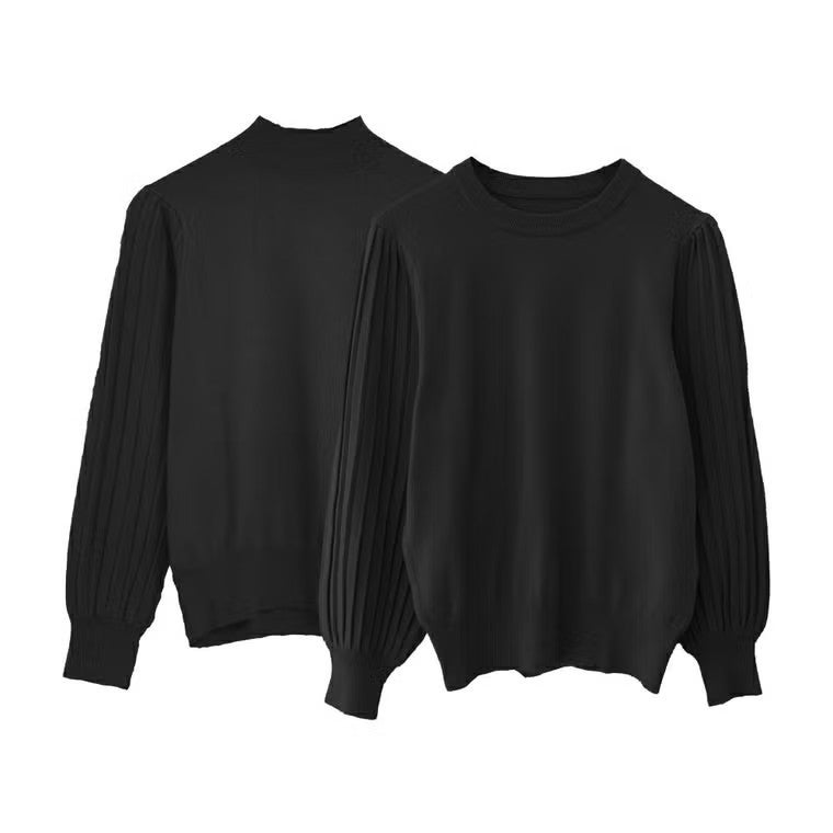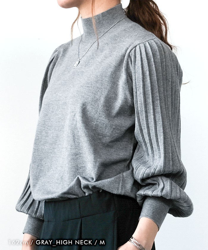 送料無料 【訳ありアウトレット】ネックタイプが選べるプリーツ袖ニット レディース 春 秋 ≪ゆうメール便配送30・代引不可≫ | アクアガレージ aquagarage