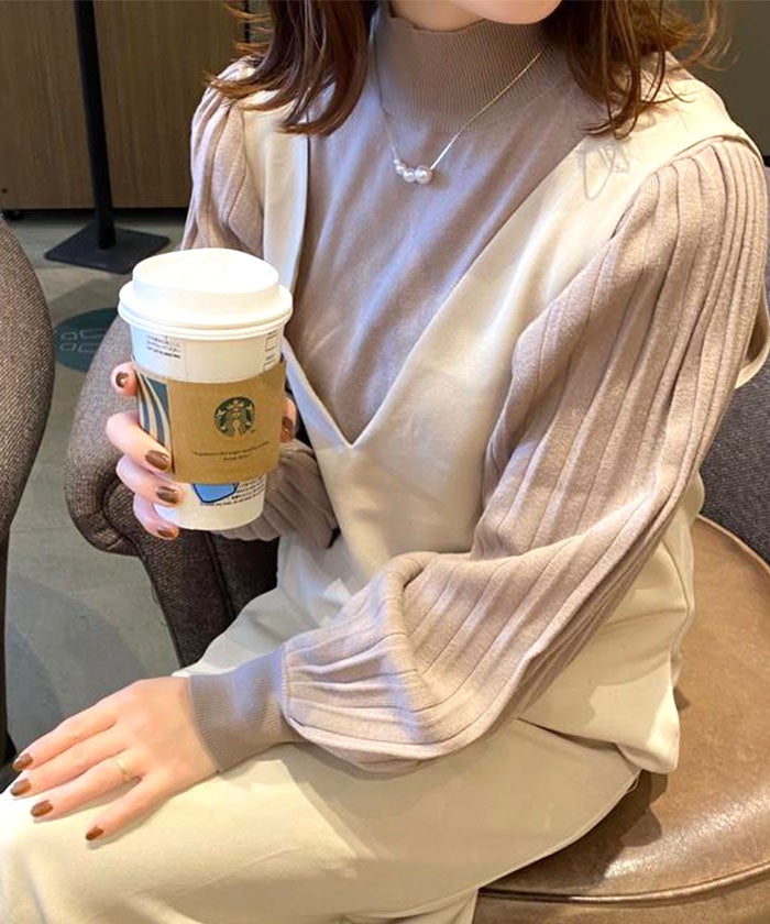 送料無料 レイヤード風リブニットトップス 春 秋 冬 M L レディース ≪ゆうメール便配送30・代引不可≫ | | アクアガレージ aquagarage